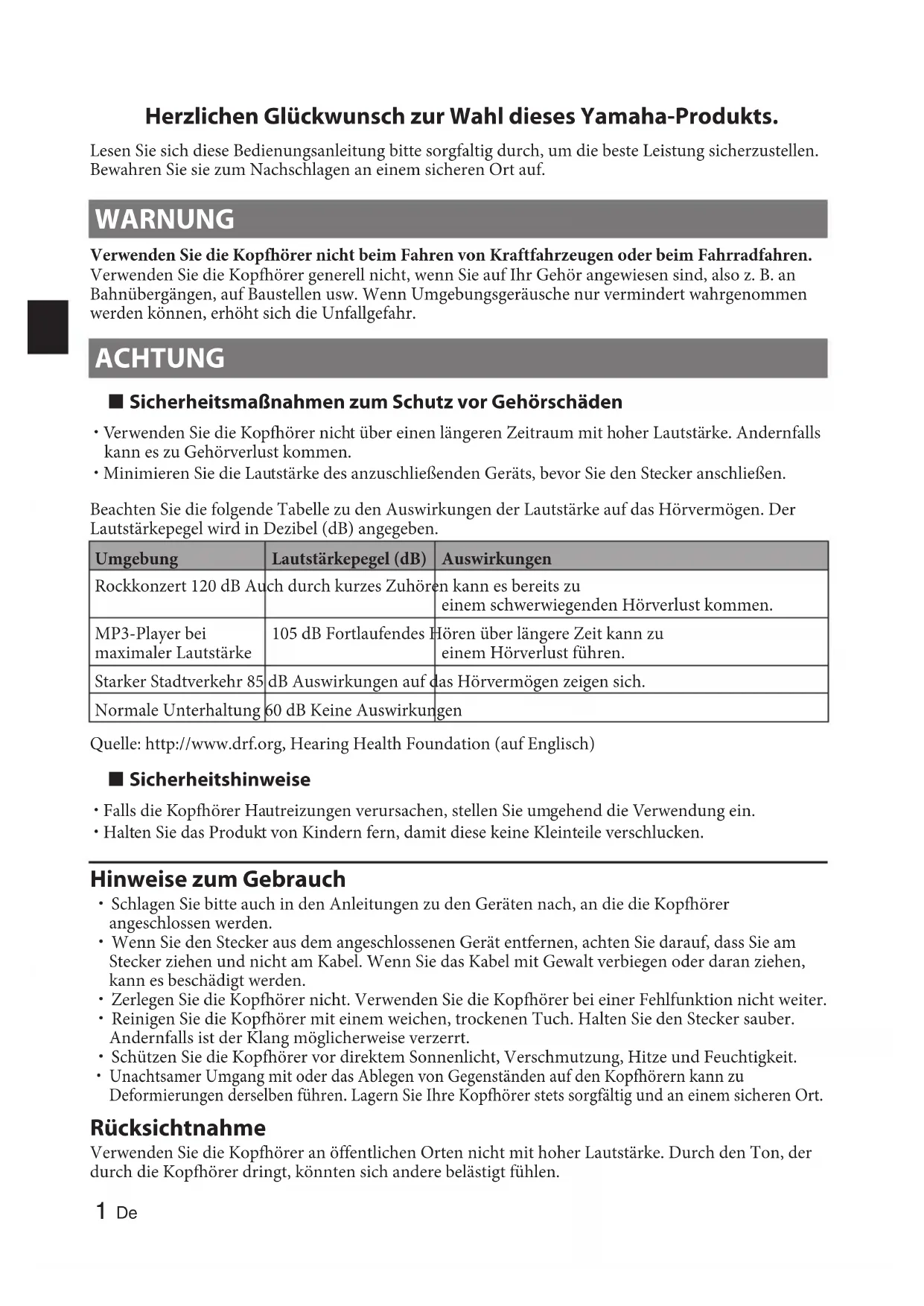 Herzlichen Glückwunsch zur Wahl dieses Yamaha-Produkts.