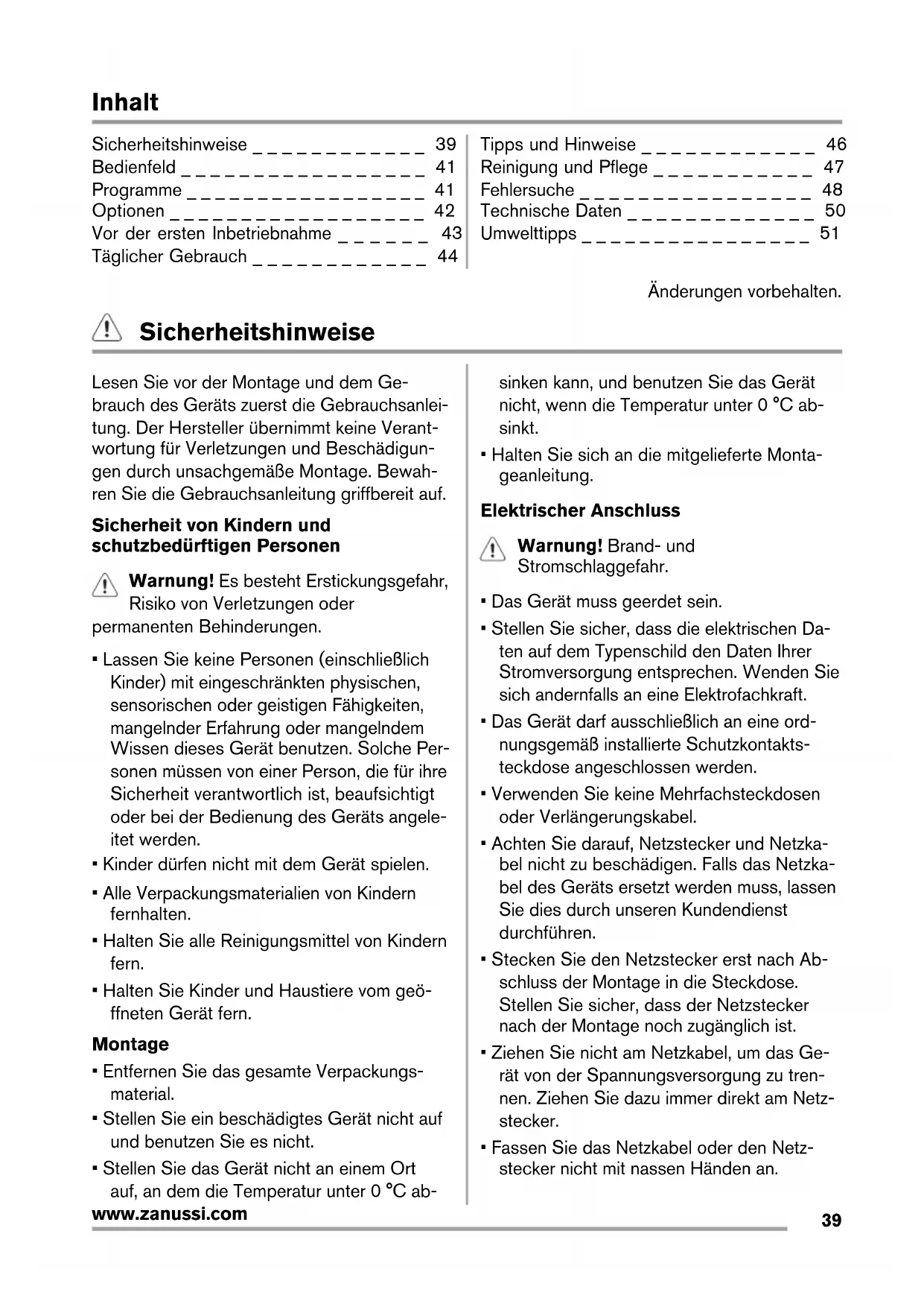 Sicherheitshinweise _ _ _ _ _ _ _ _ _ _ _ _ 39