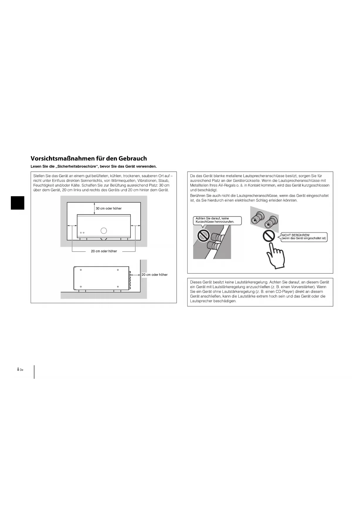 Da das Gerät blanke metallene Lautsprecheranschlüsse besitzt, sorgen Sie für