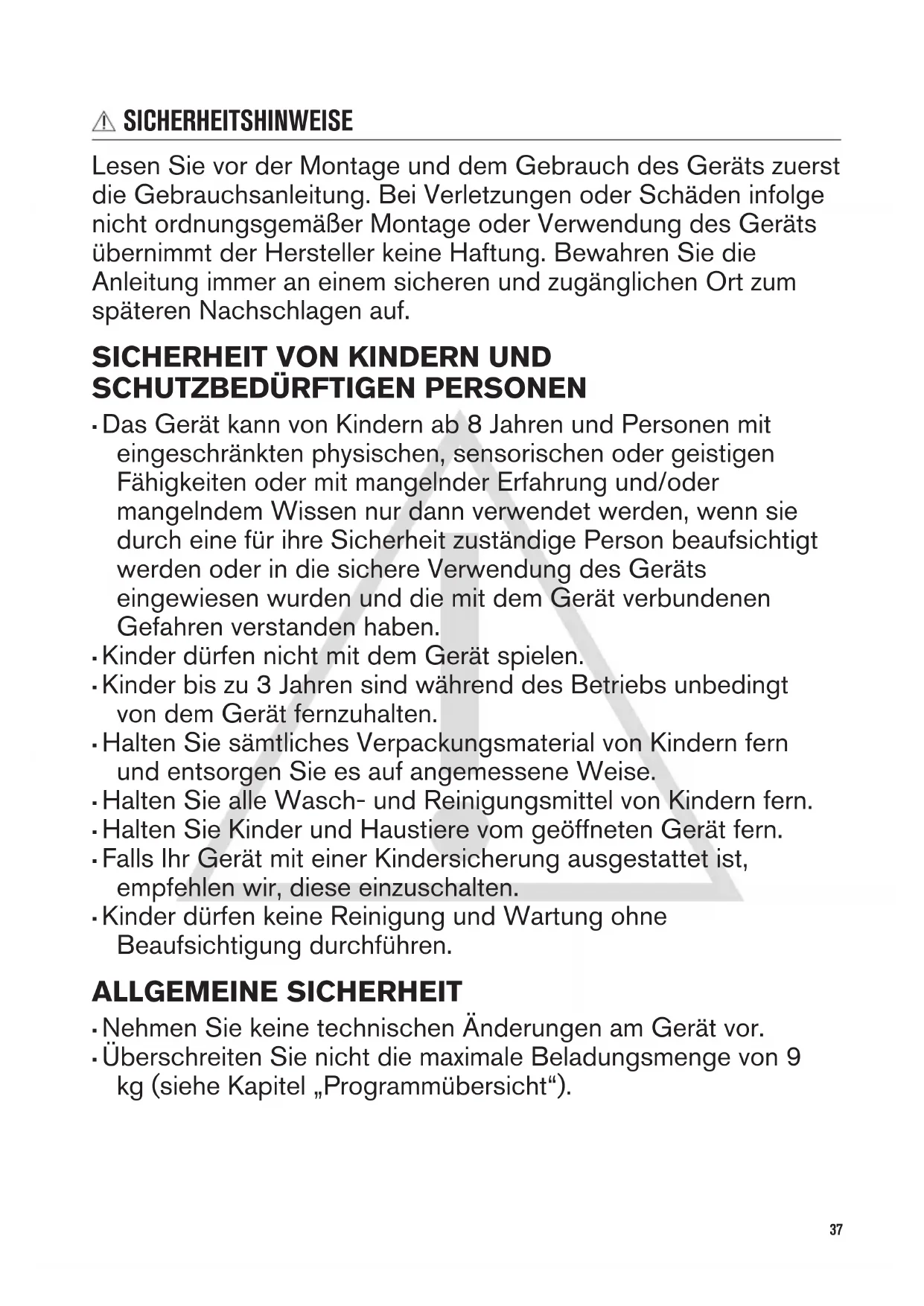 • Überschreiten Sie nicht die maximale Beladungsmenge von 9