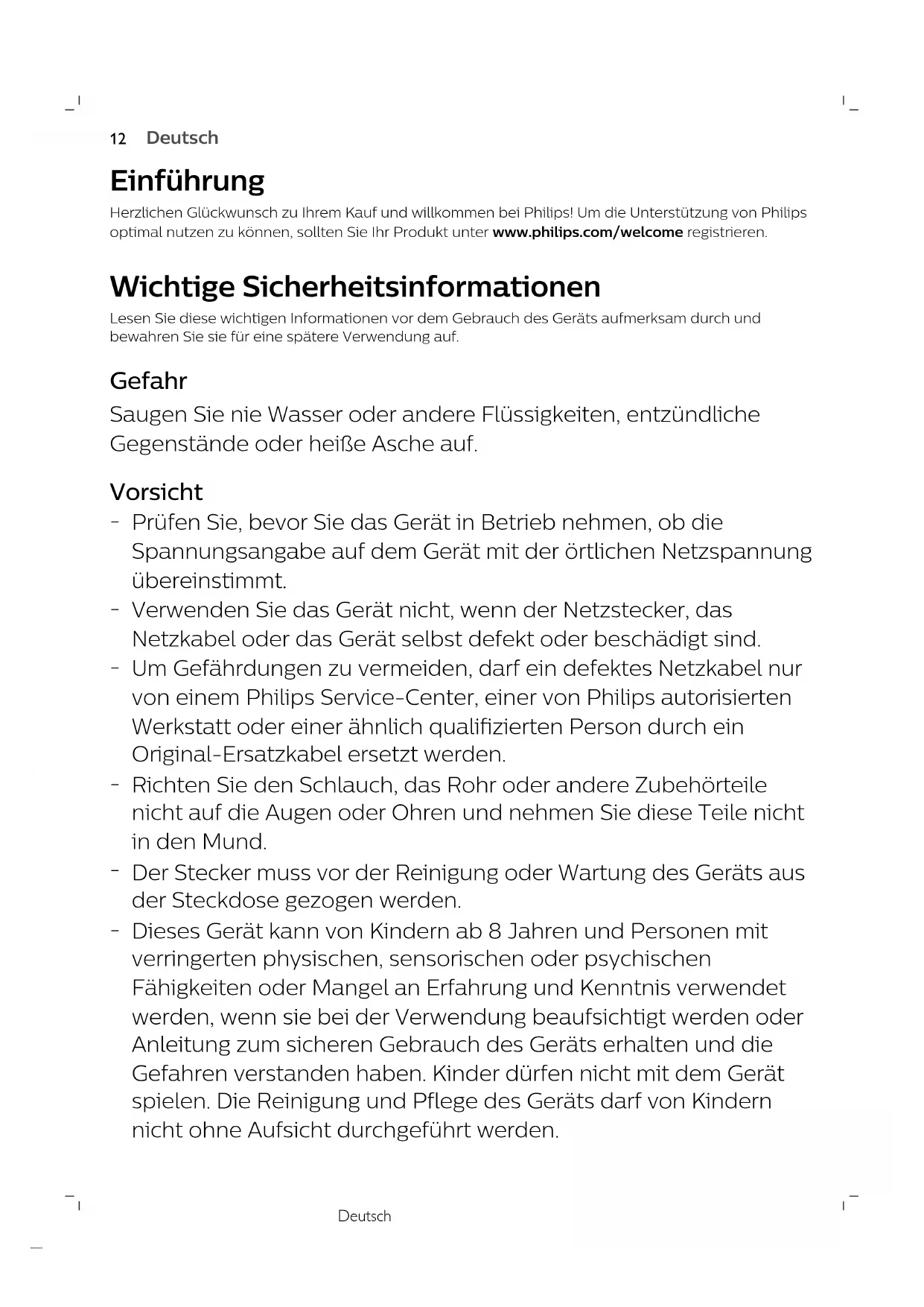 Einführung Herzlichen Glückwunsch zu Ihrem Kauf und willkommen bei Philips! Um die Unterstützung von Philipsoptimal nutzen zu können, sollten Sie Ihr Produkt unter www.philips.com/welcome registrieren. Wichtige Sicherheitsinformationen Lesen Sie diese wichtigen Informationen vor dem Gebrauch des Geräts aufmerksam durch undbewahren Sie sie für eine spätere Verwendung auf. Gefahr