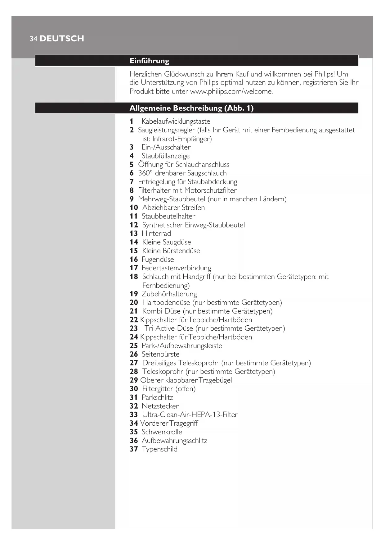 Performer FC9162 - Staubsauger PHILIPS - Kostenlose Bedienungsanleitung