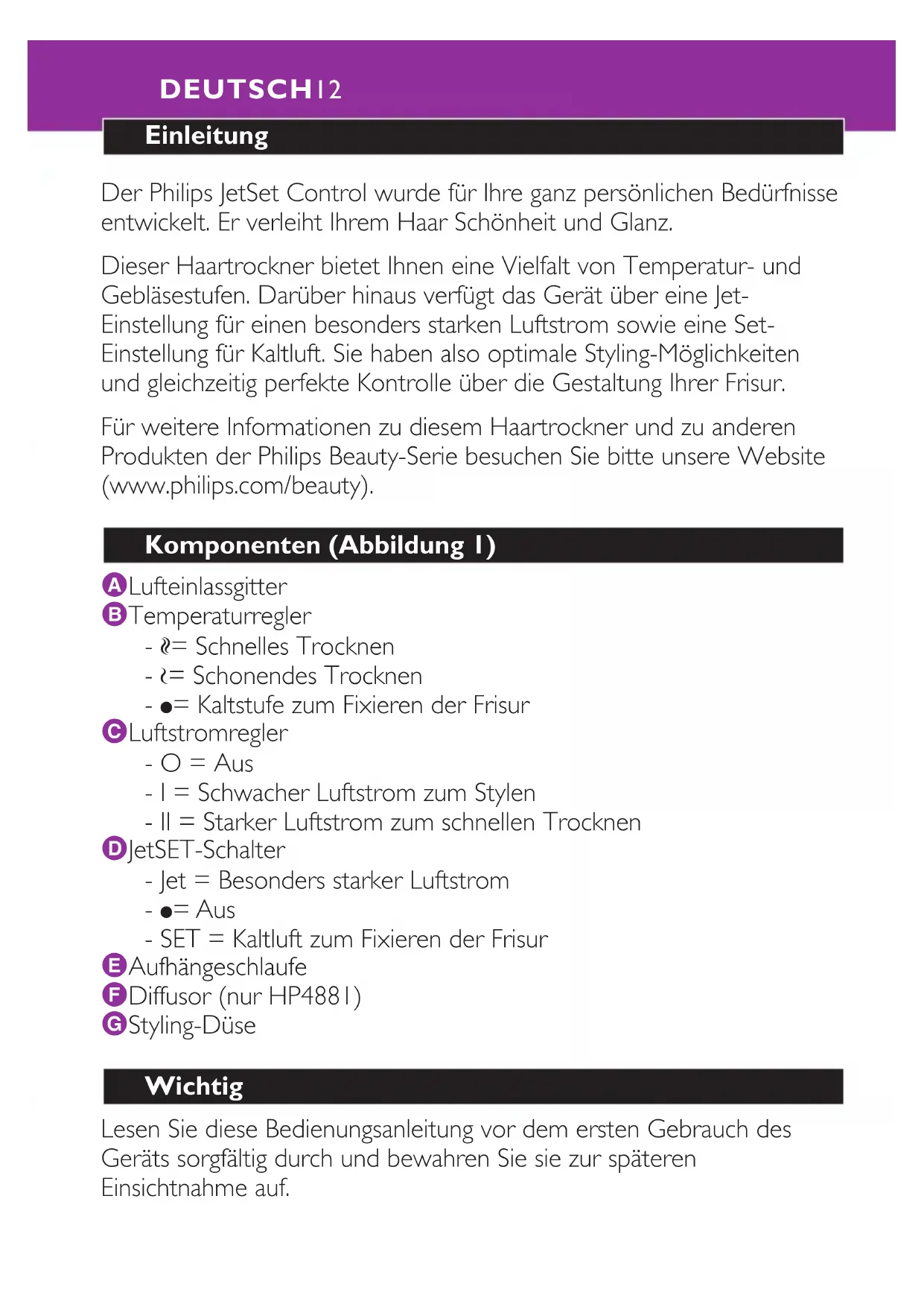 JetSet Control HP4880 - Haartrockner PHILIPS - Kostenlose Bedienungsanleitung