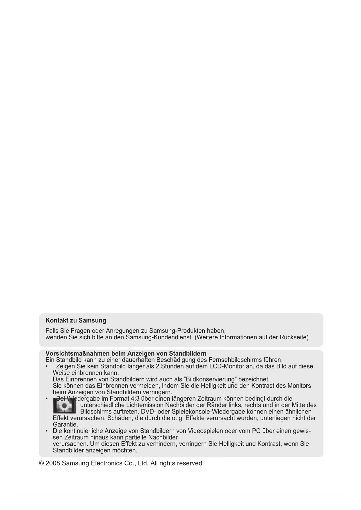 verursachen. Um diesen Effekt zu verhindern, verringern Sie Helligkeit und Kontrast, wenn Sie