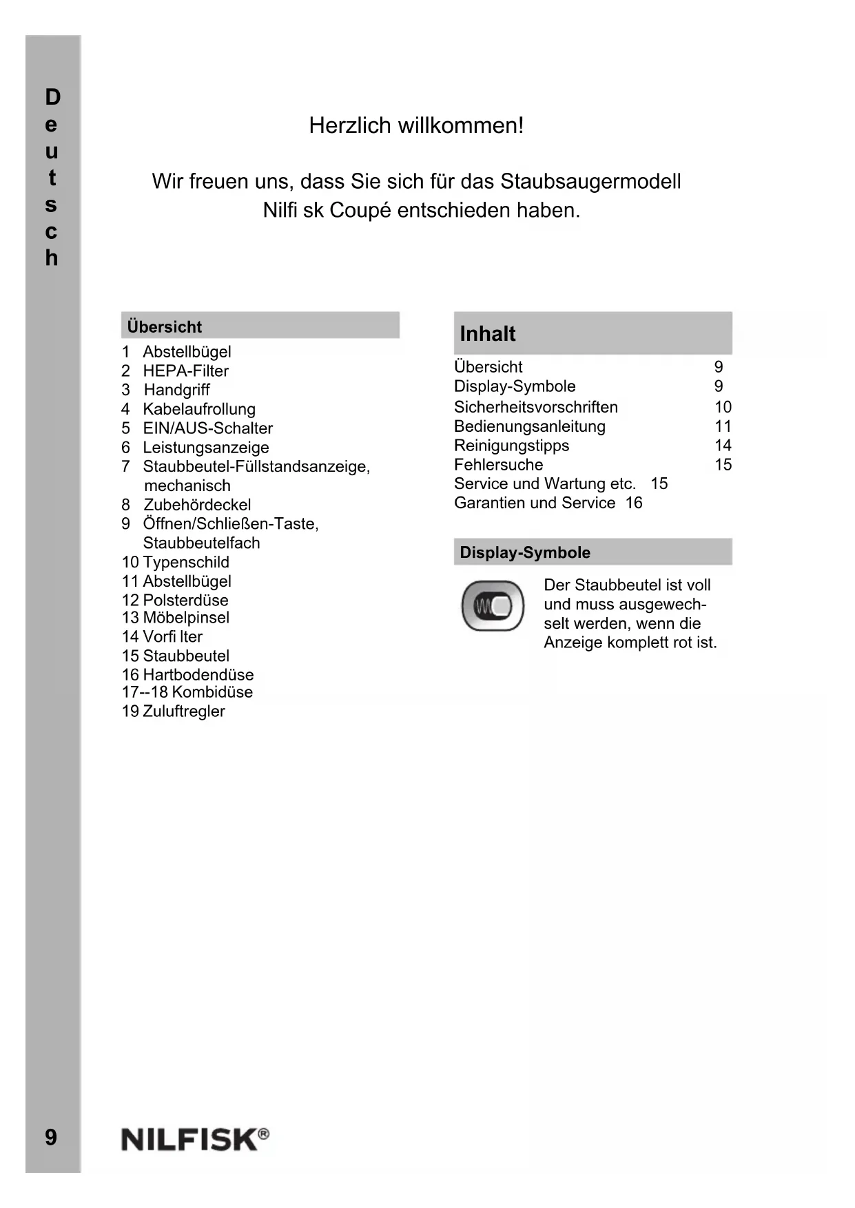BEDIENUNGSANLEITUNG Coupe Special NILFISK
