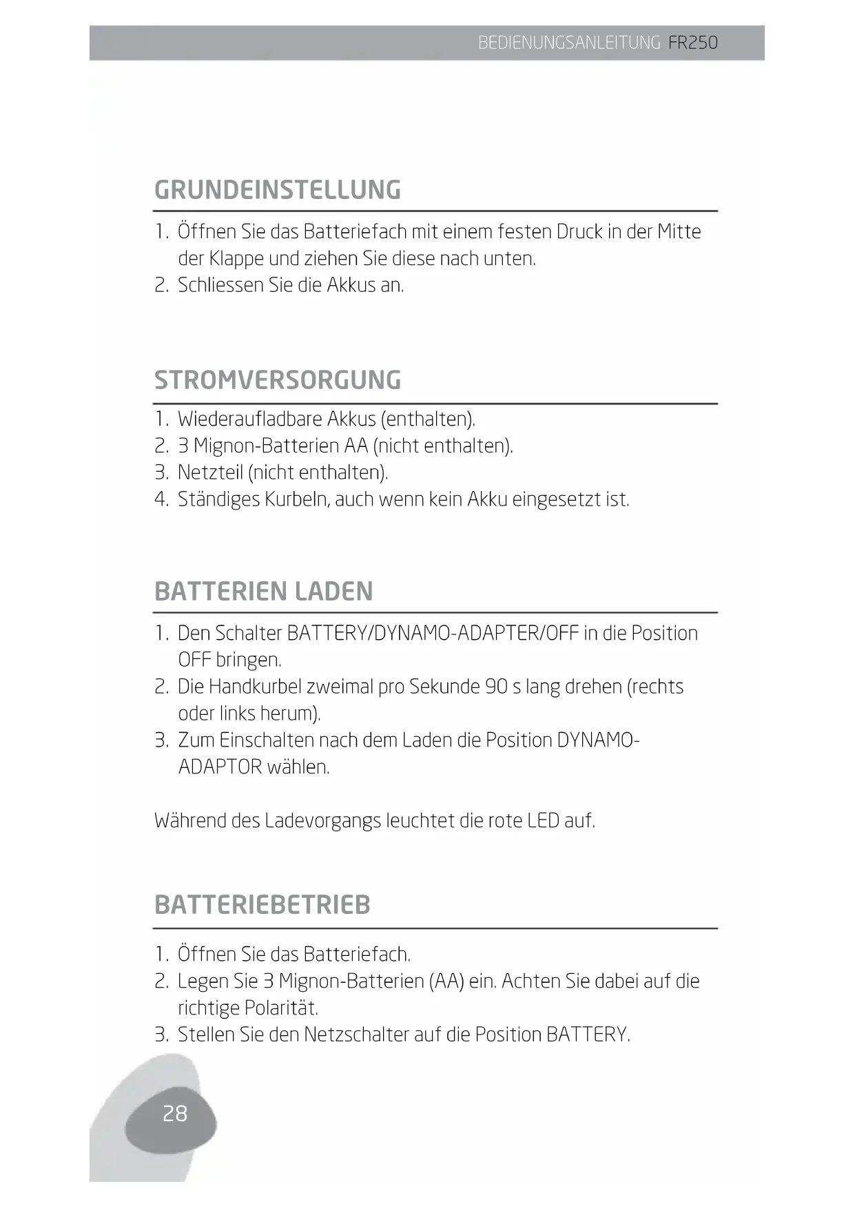 BEDIENUNGSANLEITUNG FR250 BEDIENUNGSANLEITUNG FR250