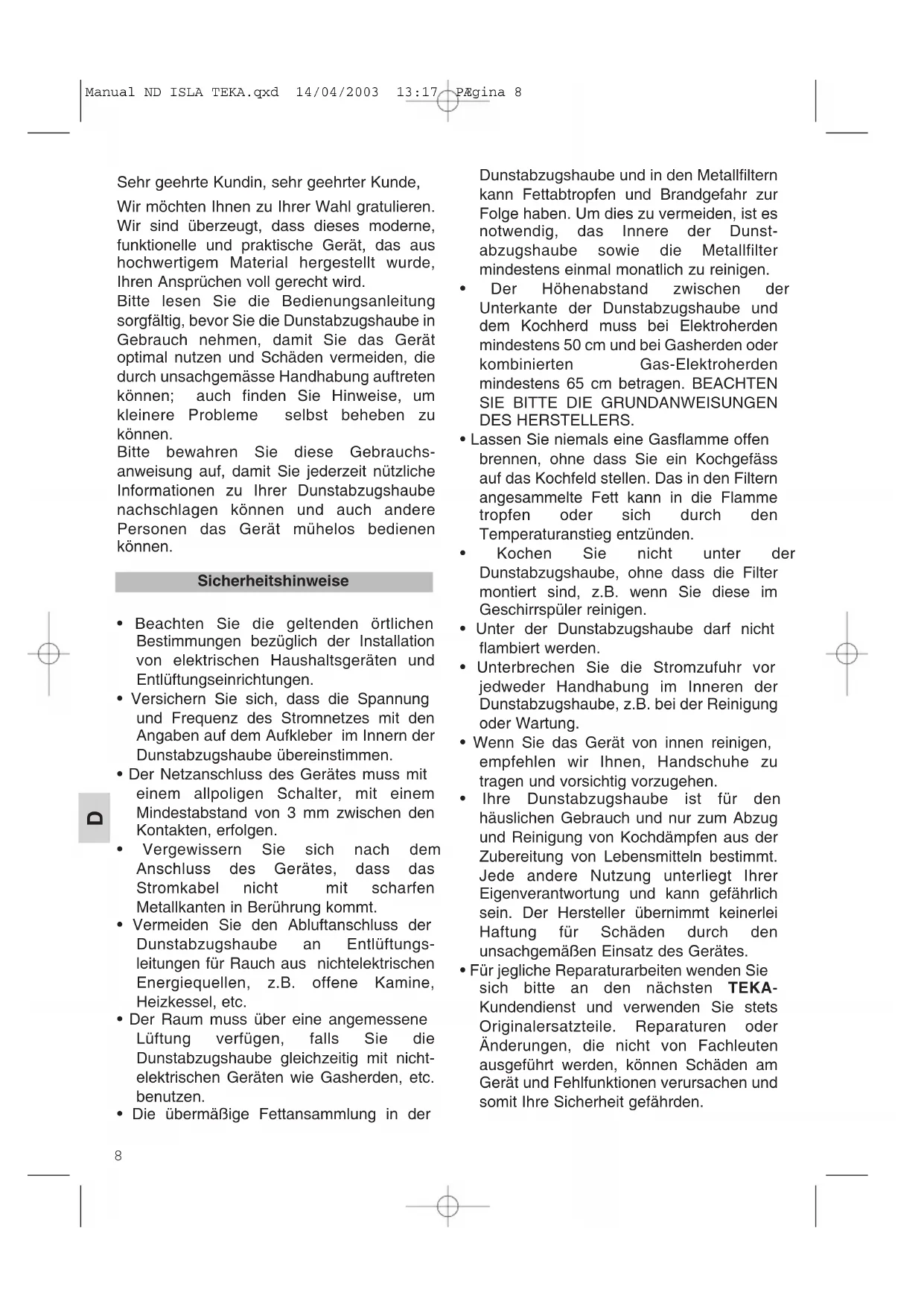 BEDIENUNGSANLEITUNG ND Aalada Isla TEKA
