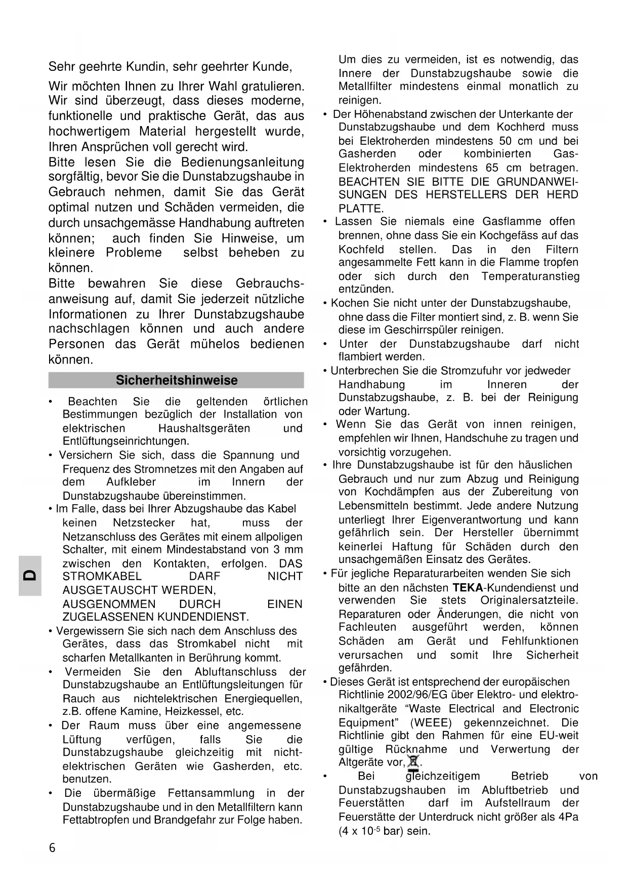 bitte an den nächsten TEKA-Kundendienst und