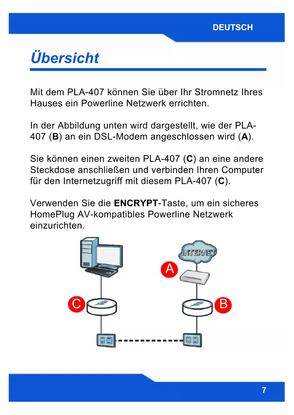BEDIENUNGSANLEITUNG ZYPLA407 ZYXEL
