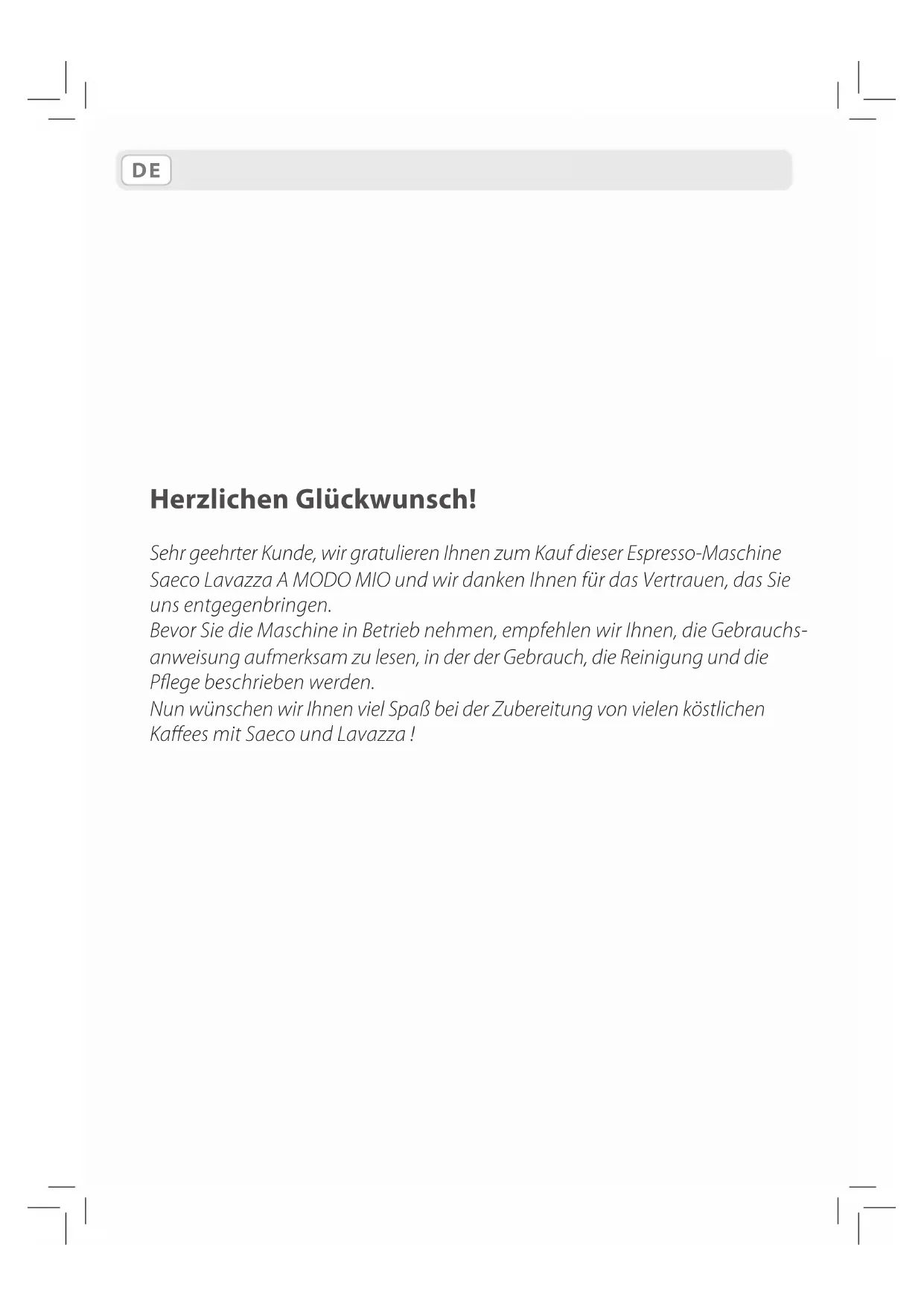 Saeco Lavazza A MODO MIO und wir danken Ihnen für das Vertrauen, das Sie
