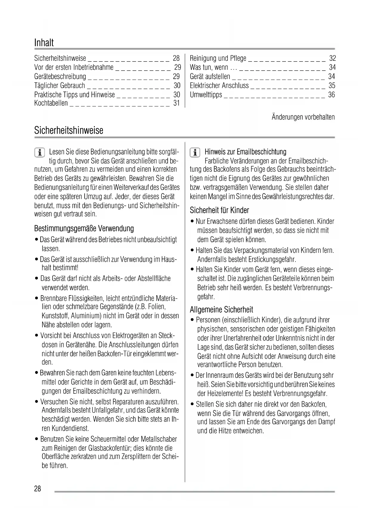 Sicherheitshinweise _ _ _ _ _ _ _ _ _ _ _ _ _ _ _ 28
