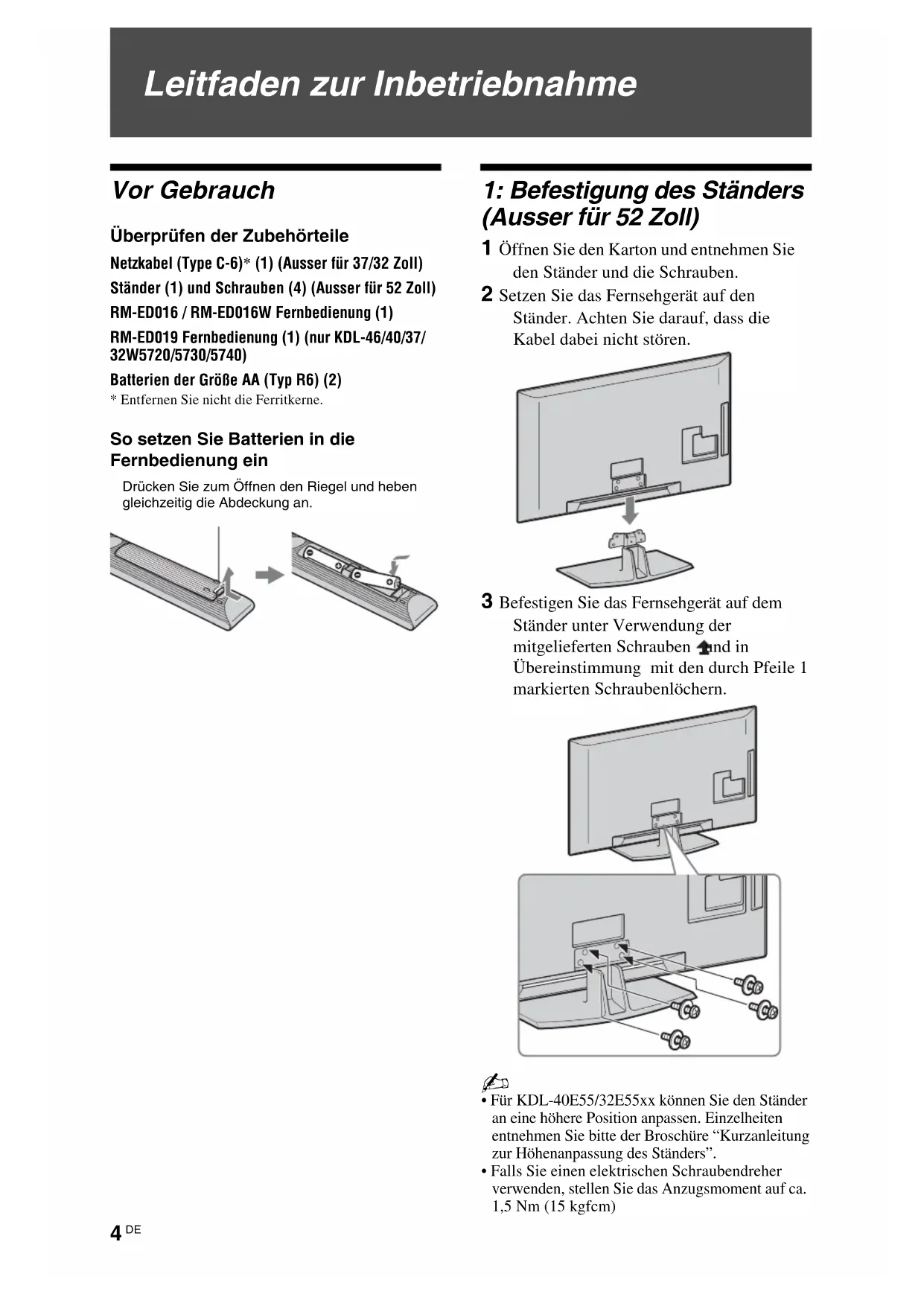 bevor Sie das Fernsehgerät verwenden,