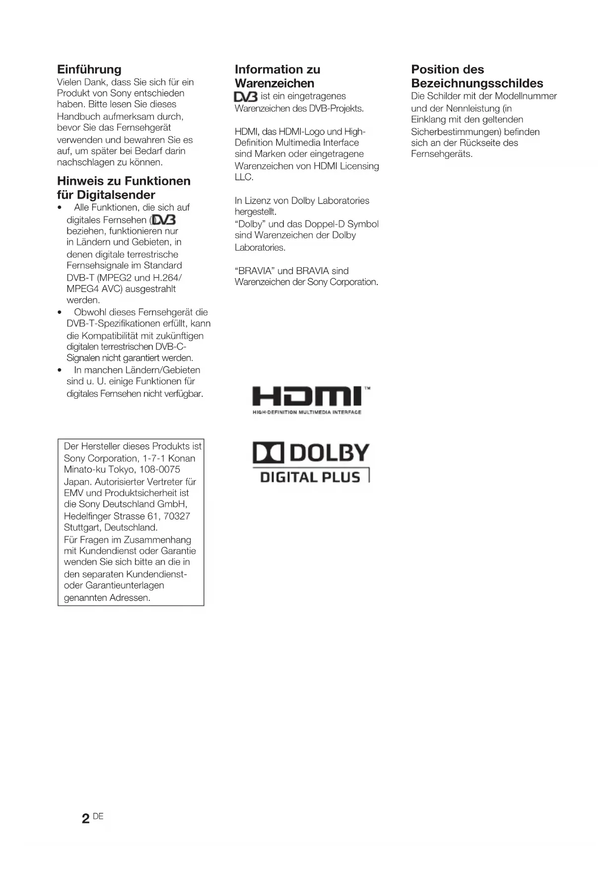 Laden Sie die Anleitung für Ihr Fernseher kostenlos im PDF-Format! Finden Sie Ihr Handbuch Bravia KDL19BX200AEP - SONY und nehmen Sie Ihr elektronisches Gerät wieder in die Hand. Auf dieser Seite sind alle Dokumente veröffentlicht, die für die Verwendung Ihres Geräts notwendig sind. Bravia KDL19BX200AEP von der Marke SONY.