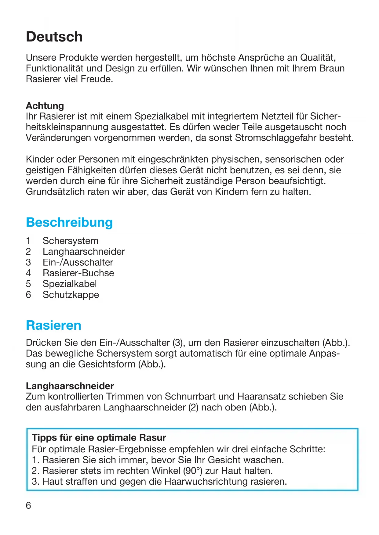 Achtung: Der Rasierer ist vom Anschlusskabel zu trennen, bevor der