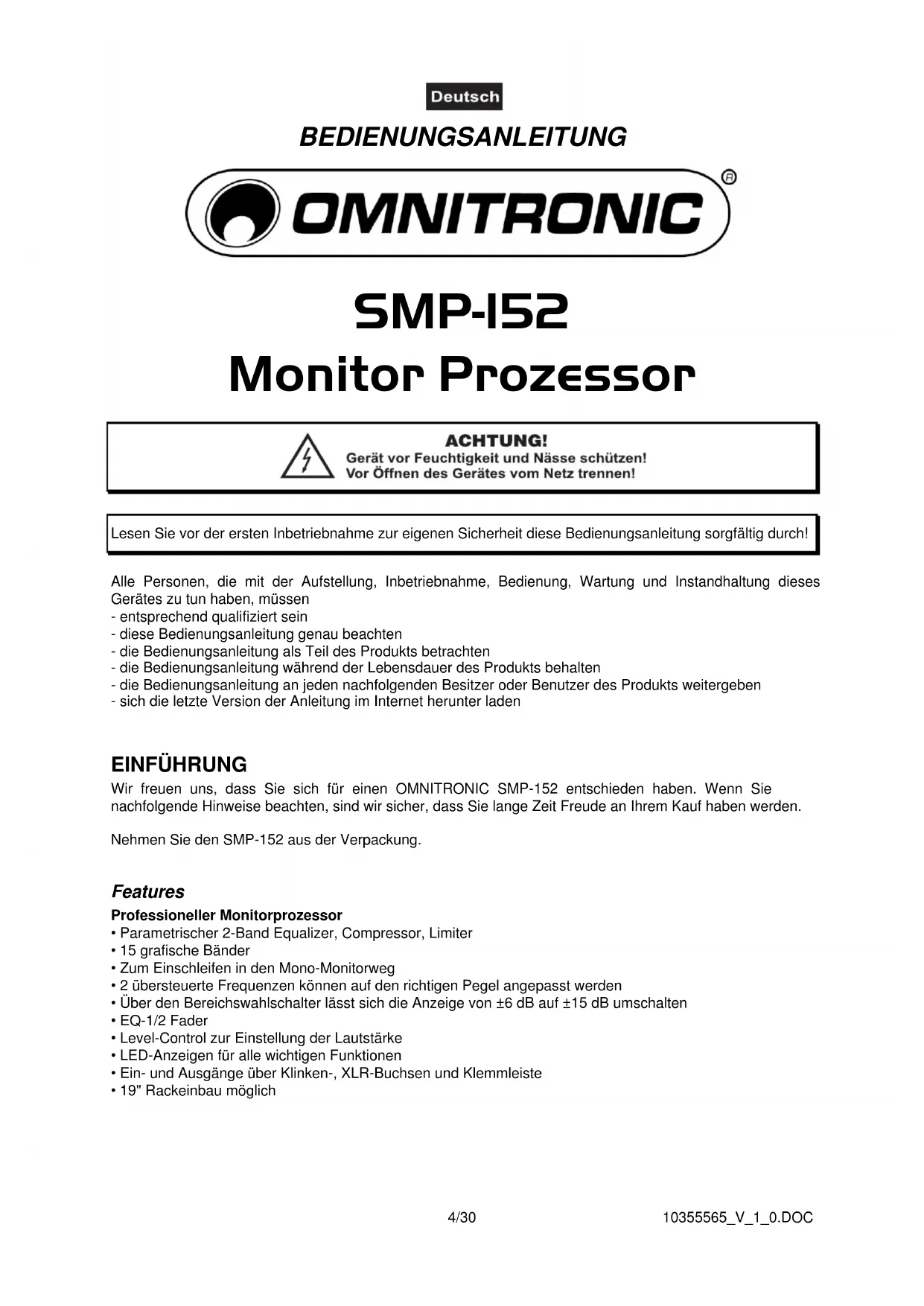 BEDIENUNGSANLEITUNG SMP152 Omnitronic