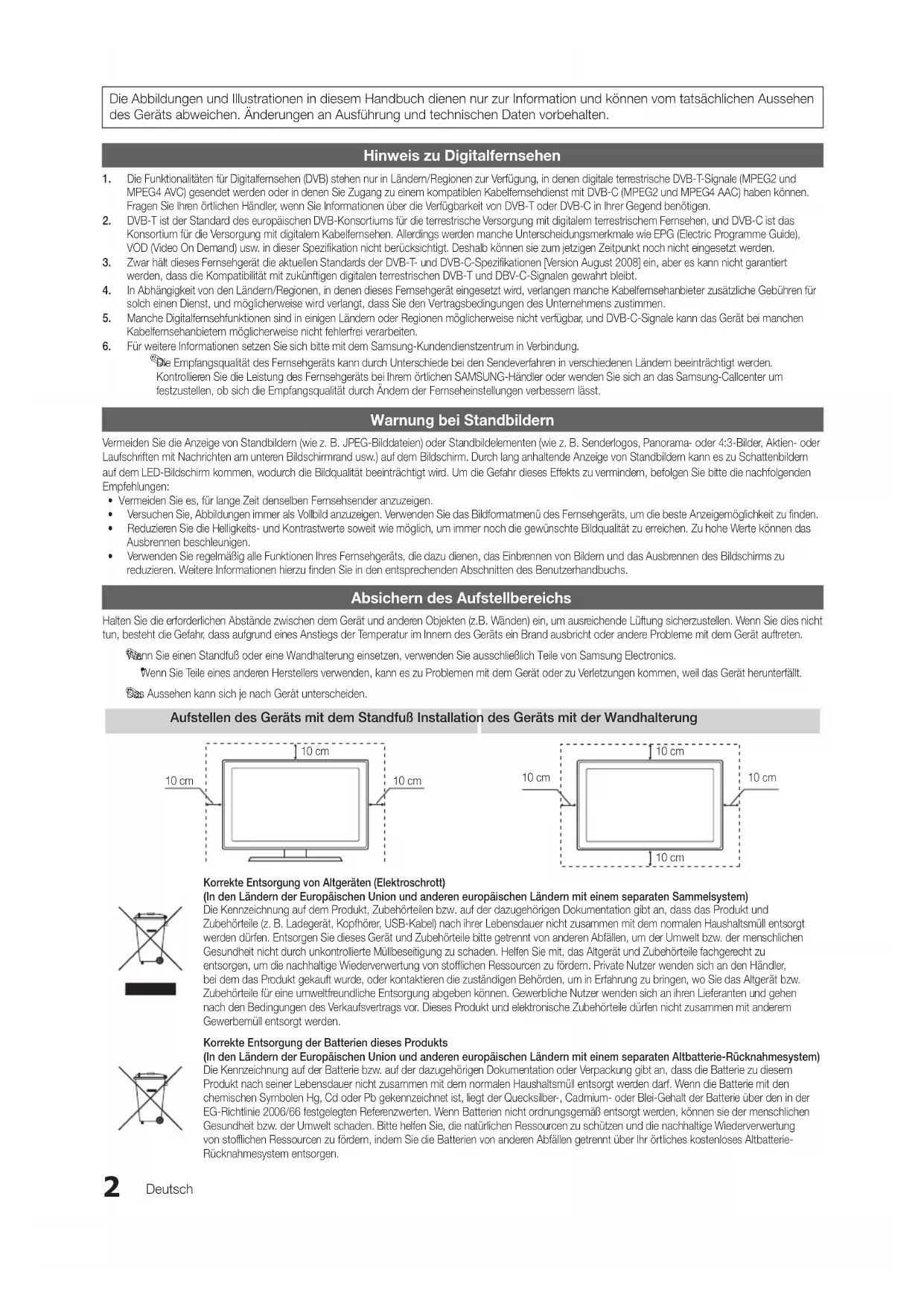 3. Zwar hält dieses Fernsehgerät die aktuellen Standards der DVB-T- und DVB-C-Spezifikationen [Version August 2008] ein, aber es kann nicht garantiert