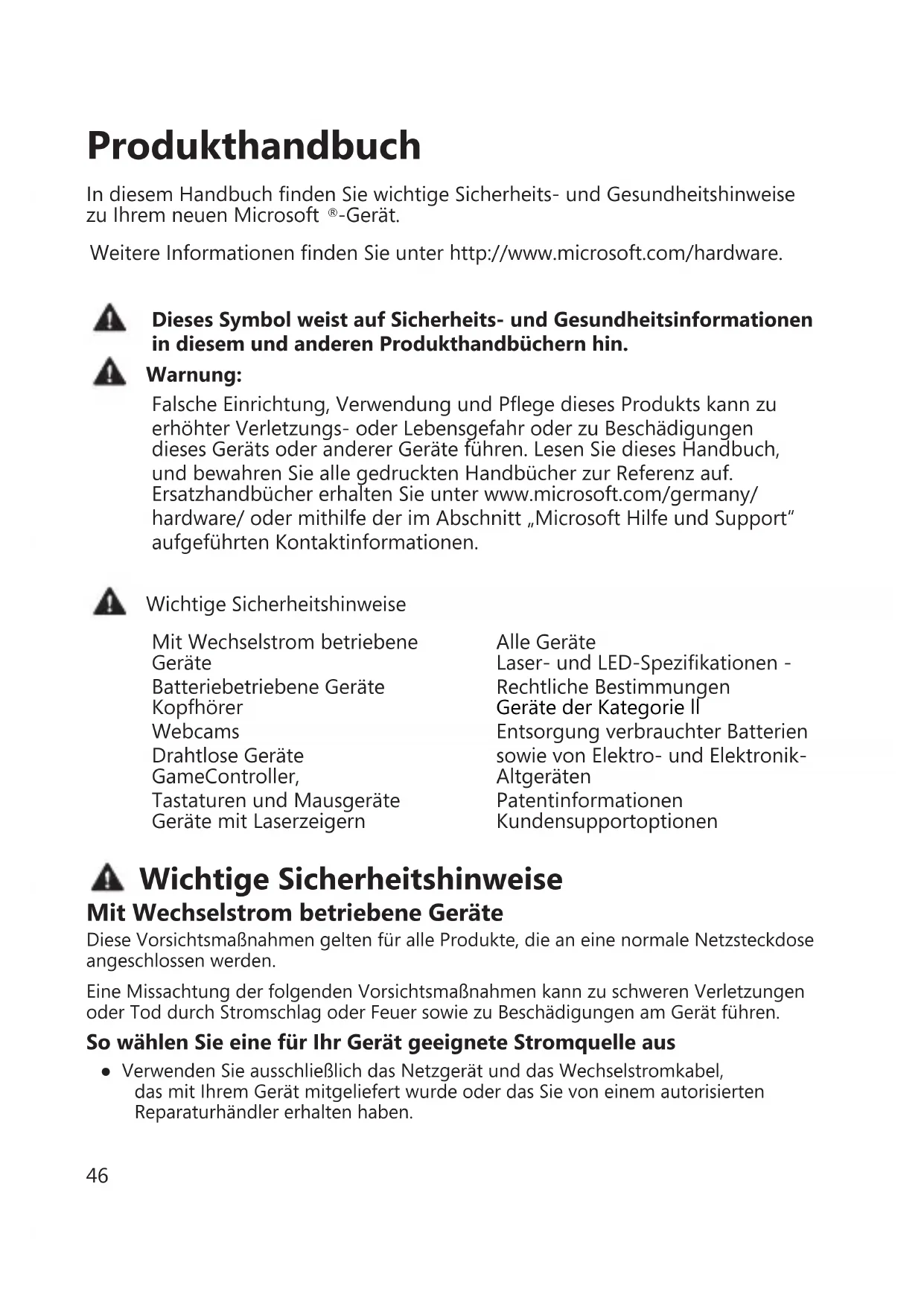 Ersatzhandbücher erhalten Sie unter www.microsoft.com/germany/