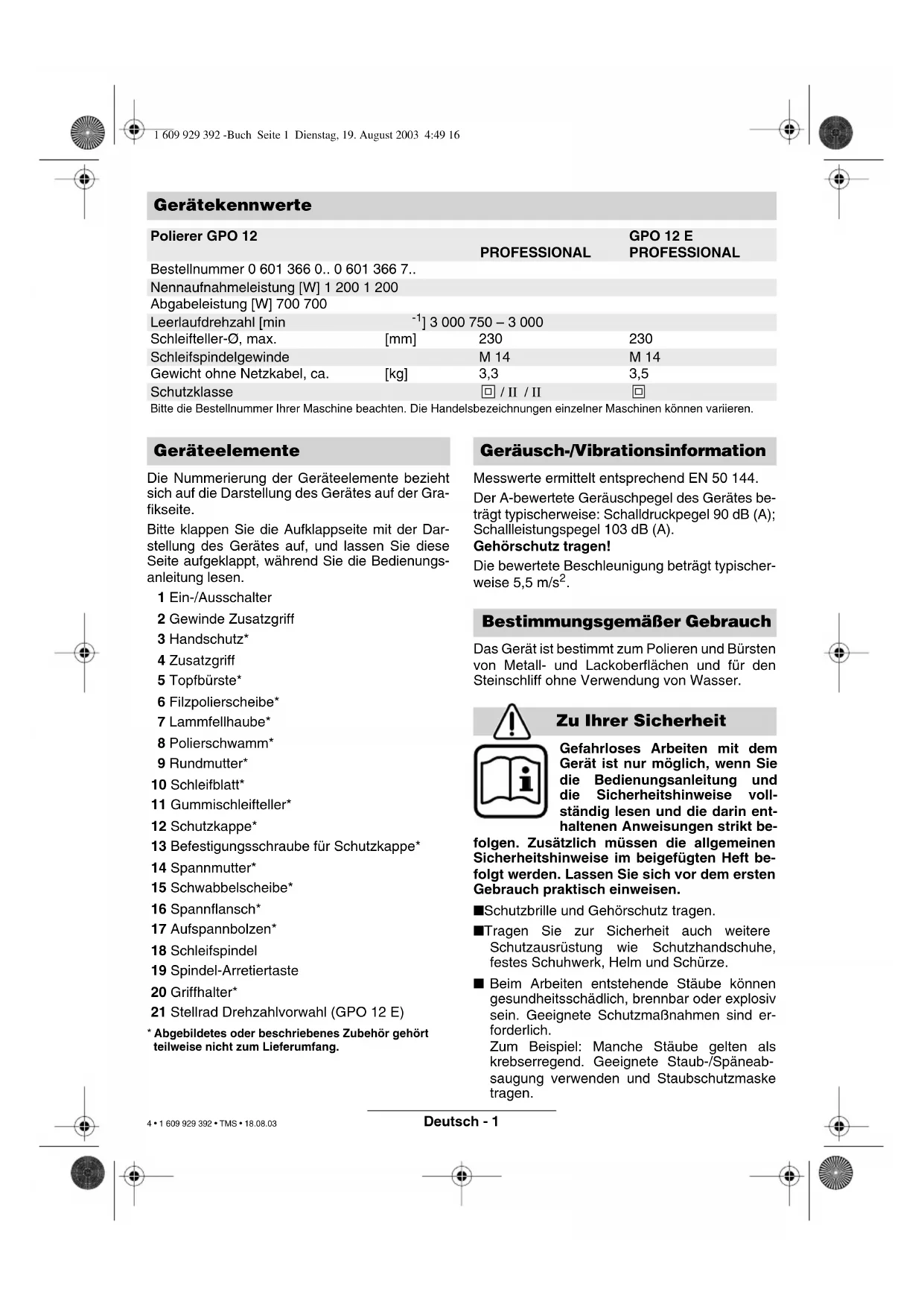 PROFESSIONAL GPO 12 E PROFESSIONAL Bestellnummer 0 601 366 0.. 0 601 366 7..