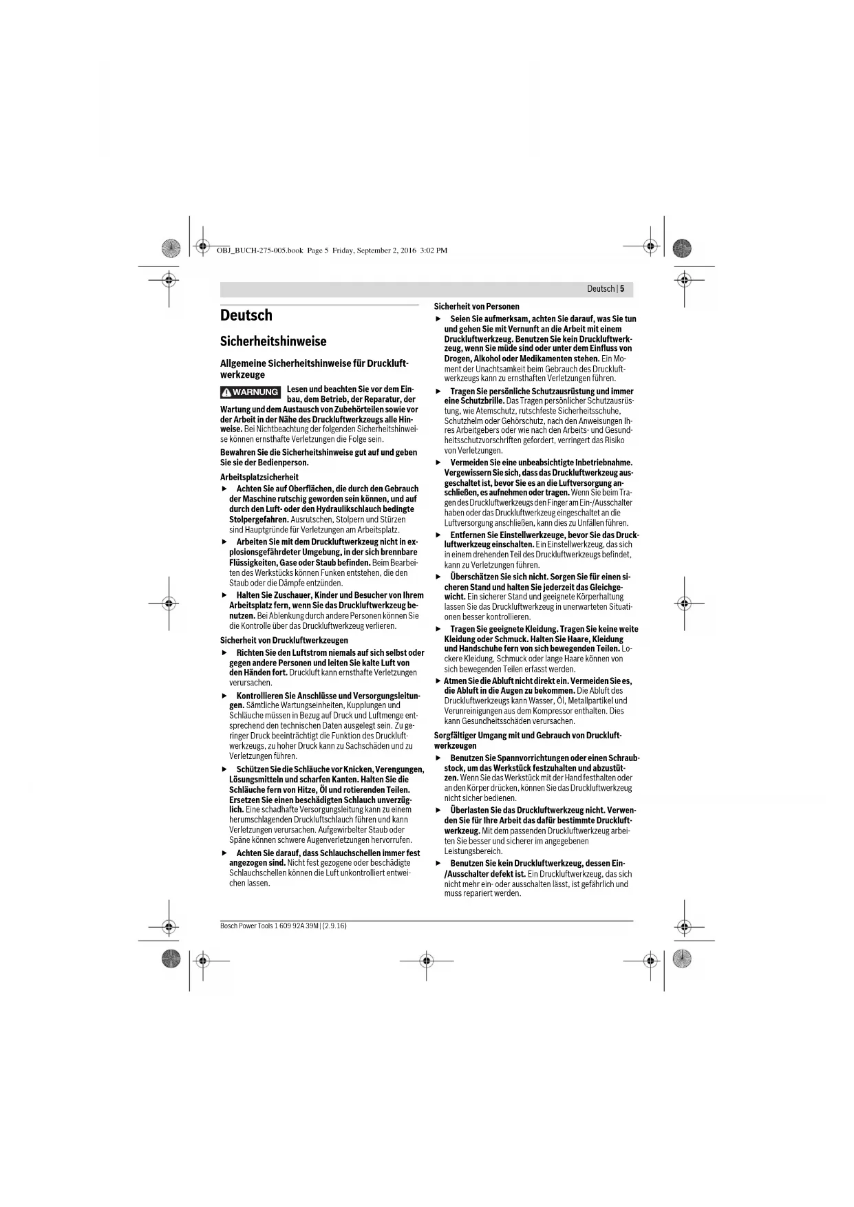 Allgemeine Sicherheitshinweise für Druckluft-