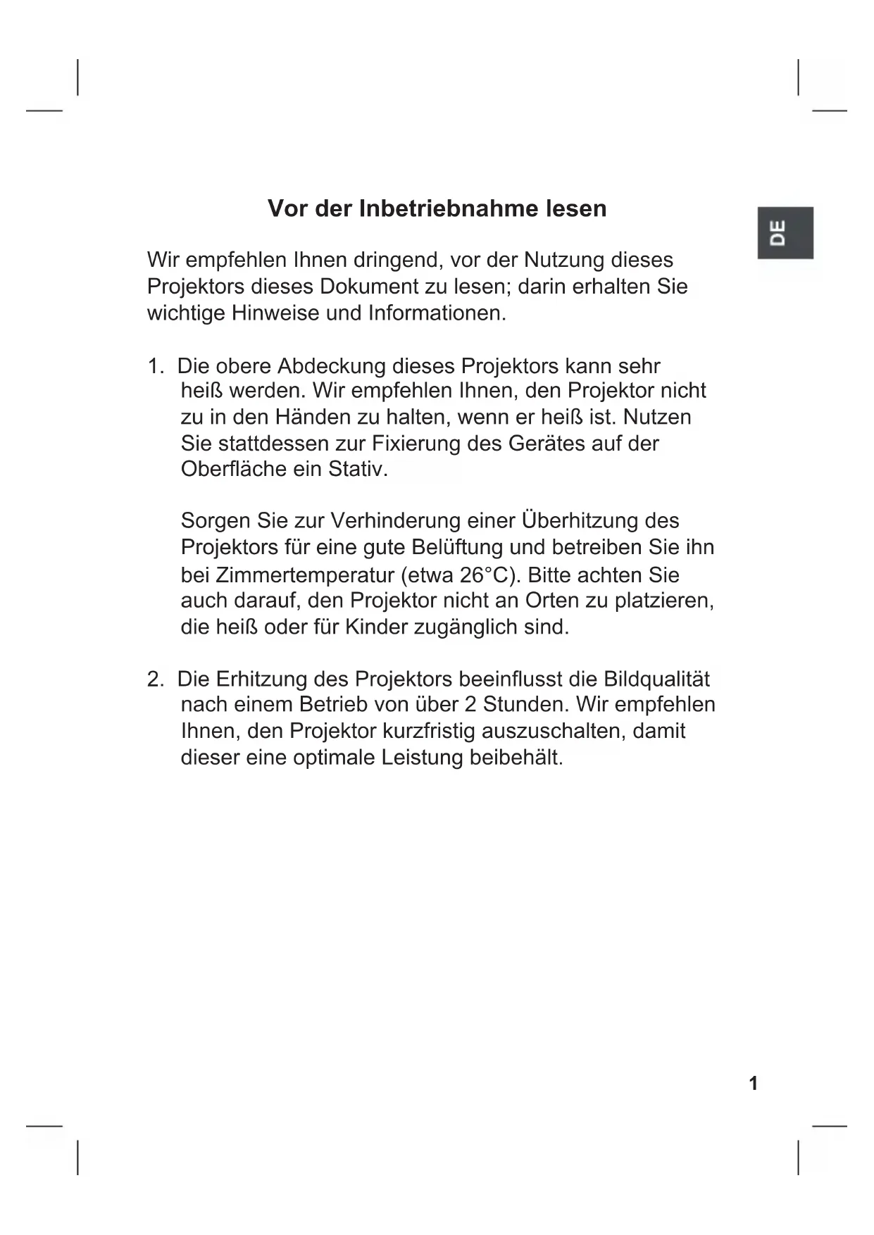 2. Die Erhitzung des Projektors beeinusst die Bildqualität