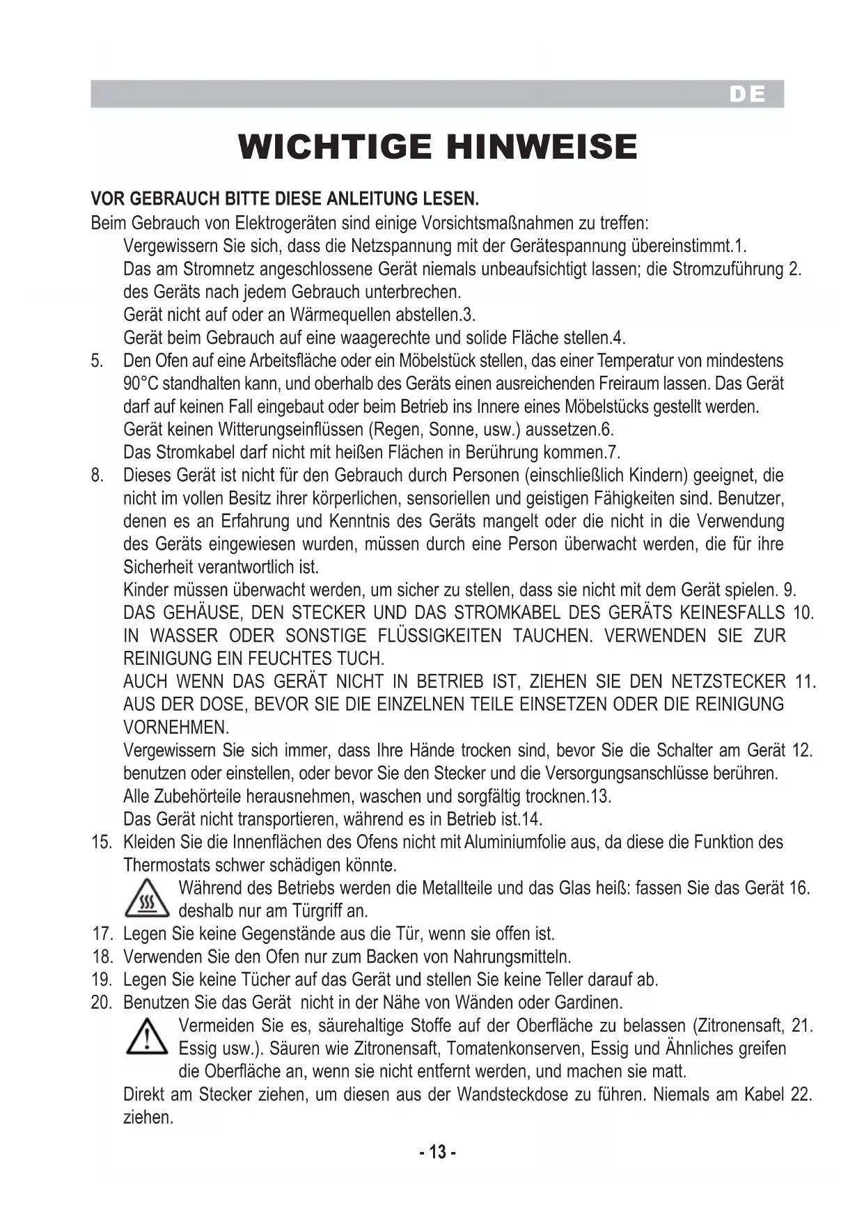 WICHTIGE HINWEISE VOR GEBRAUCH BITTE DIESE ANLEITUNG LESEN.