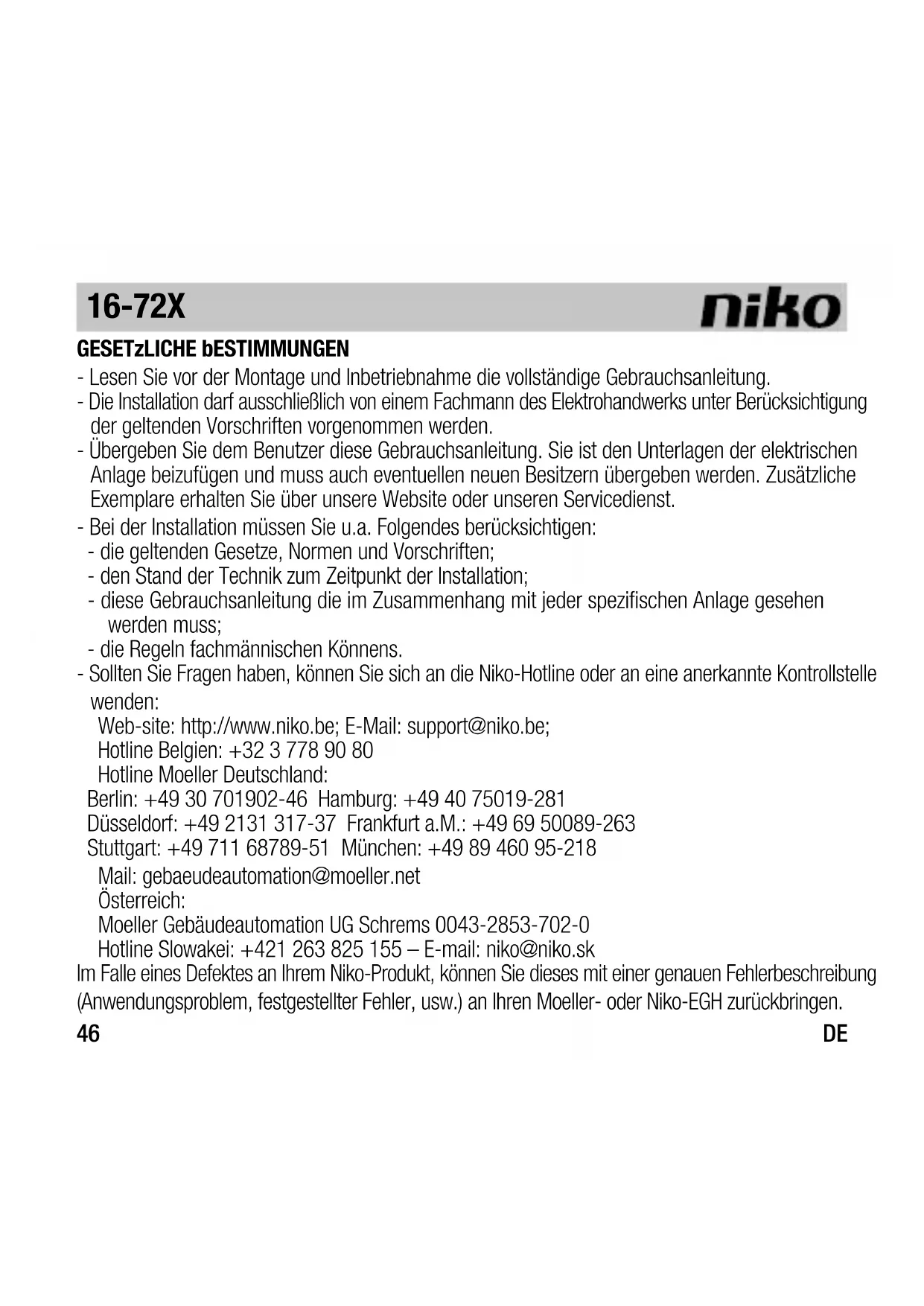 Web-site: http://www.niko.be; E-Mail: support@niko.be;