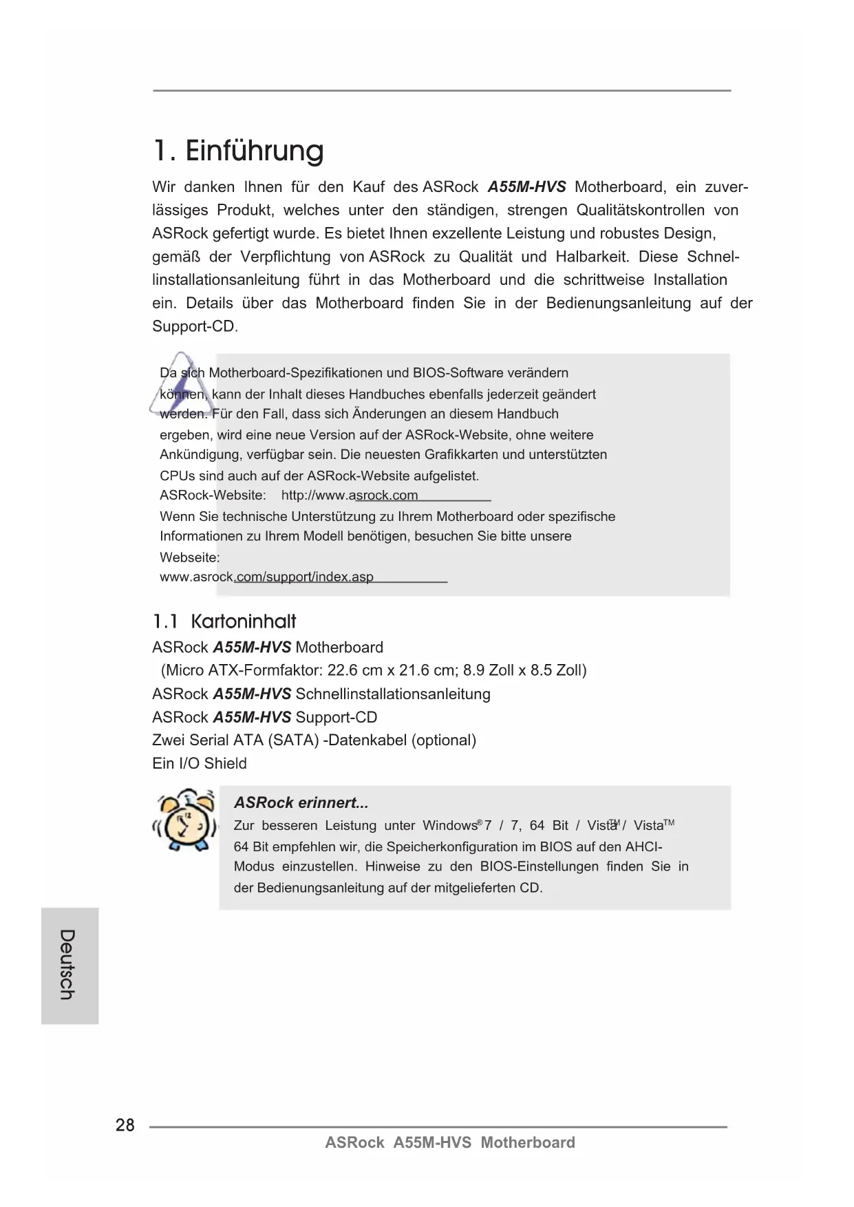 Wir danken Ihnen für den Kauf des ASRock A55M-HVS Motherboard, ein zuver-