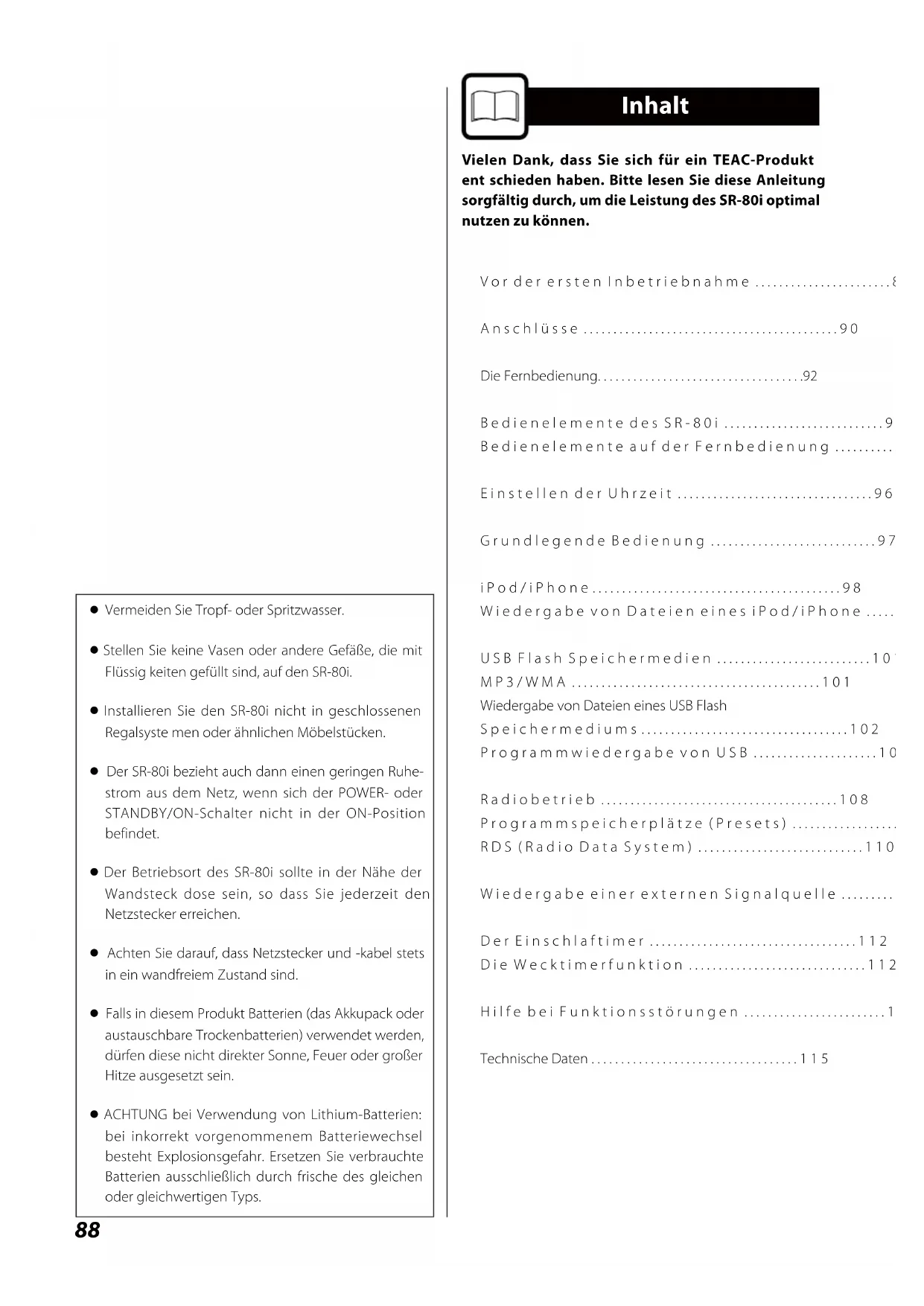 Finden Sie kostenlos die Bedienungsanleitung des Geräts SR80i TEAC als PDF.