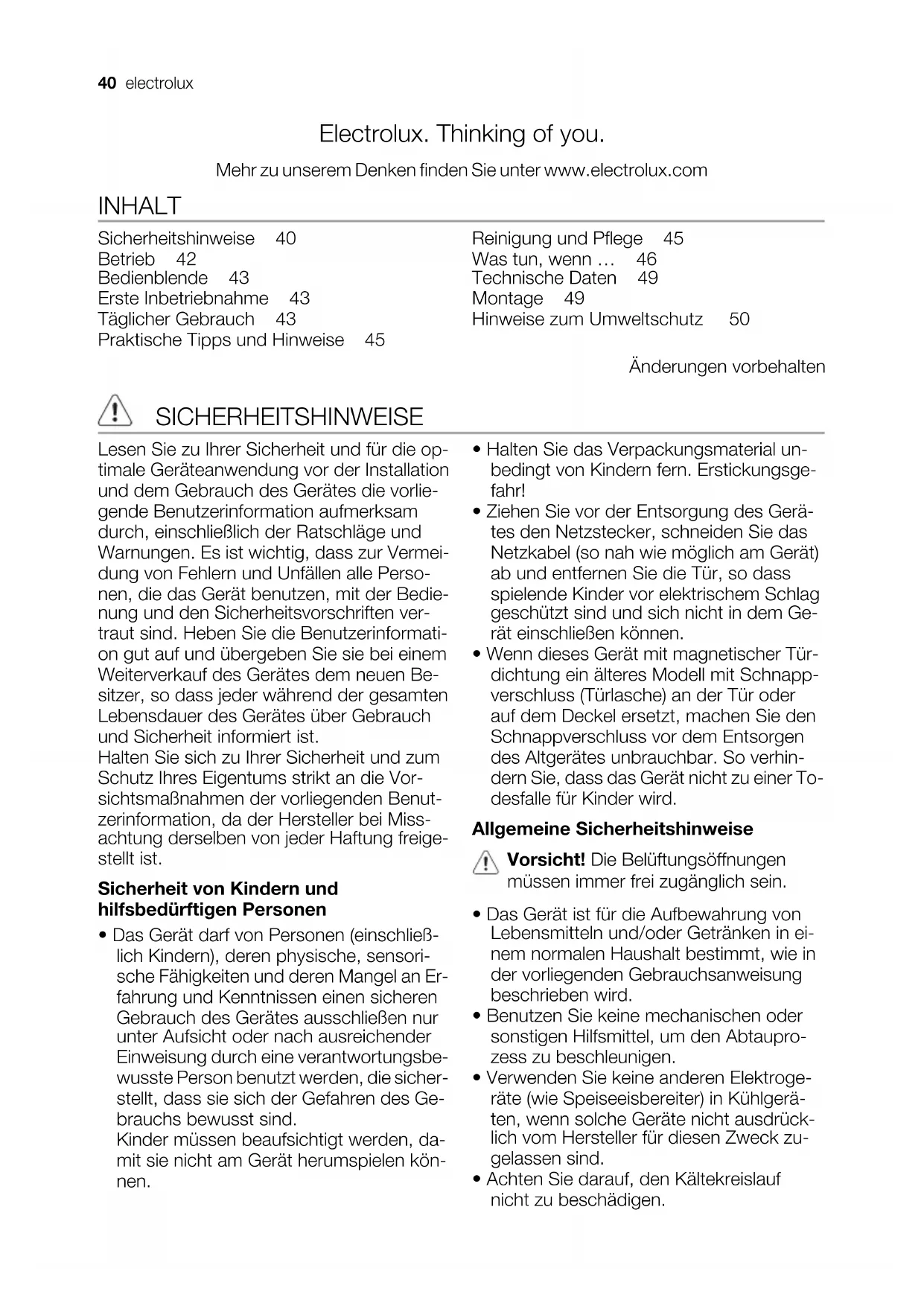 40 electrolux• Das Kältemittel Isobutan (R600a) im Käl-
