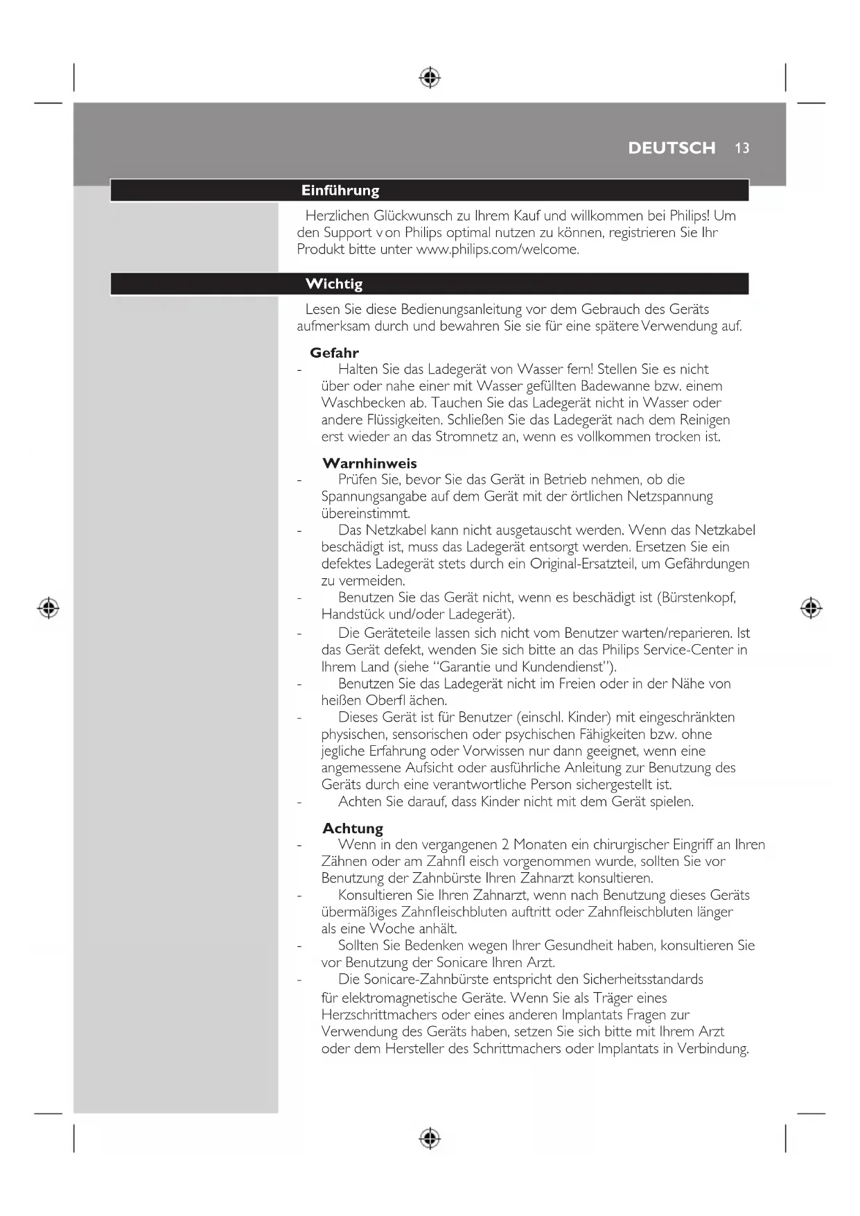 vor Benutzung der Sonicare Ihren Arzt.