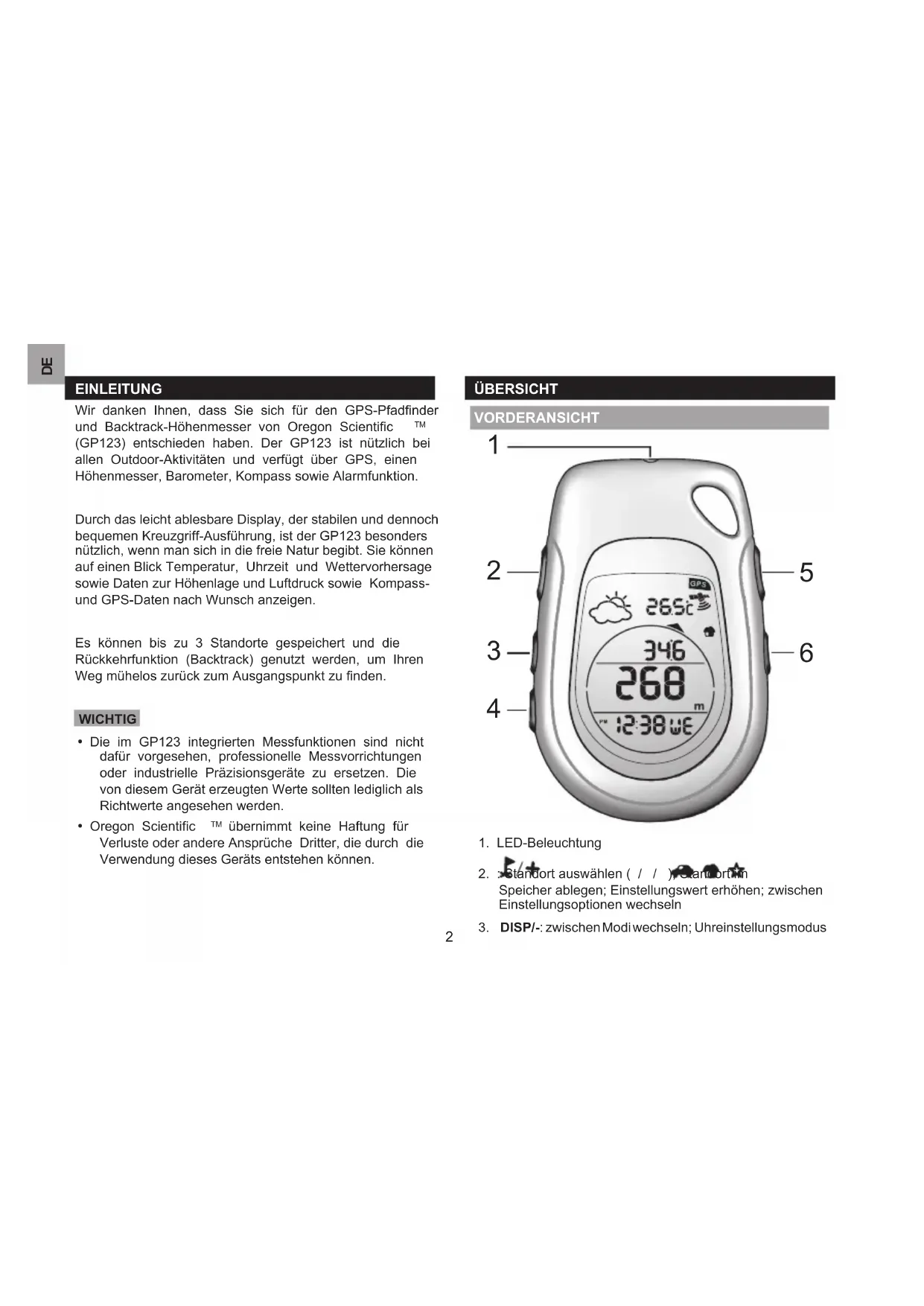 BEDIENUNGSANLEITUNG GP123 OREGON SCIENTIFIC