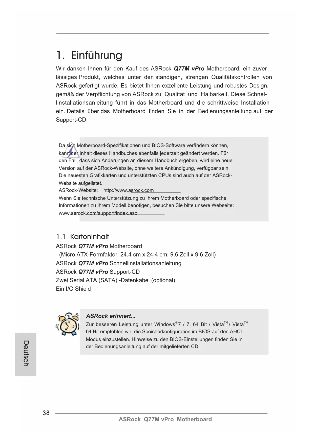 Q77M vPro - Motherboard ASROCK - Kostenlose Bedienungsanleitung