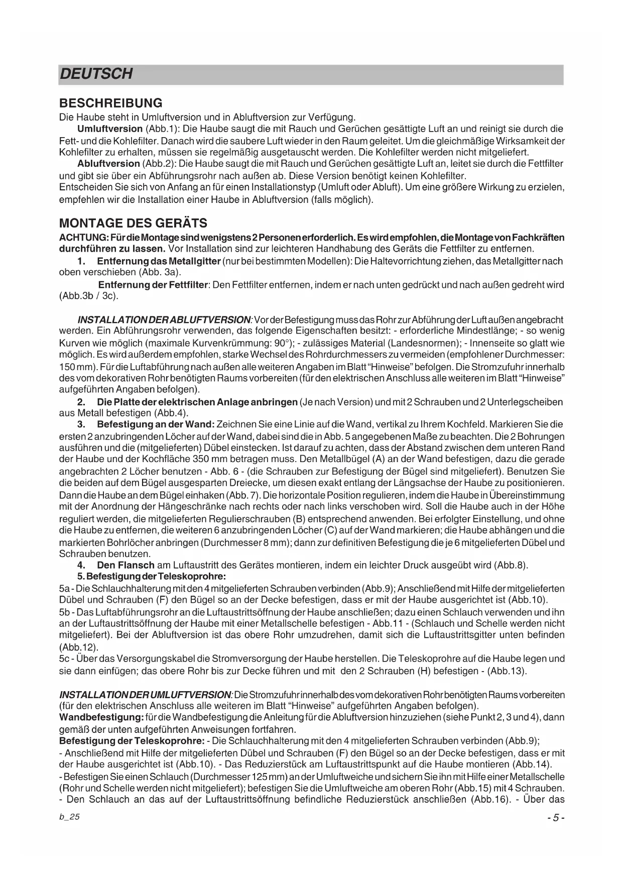 DEUTSCH BESCHREIBUNG Die Haube steht in Umluftversion und in Abluftversion zur Verfügung.
