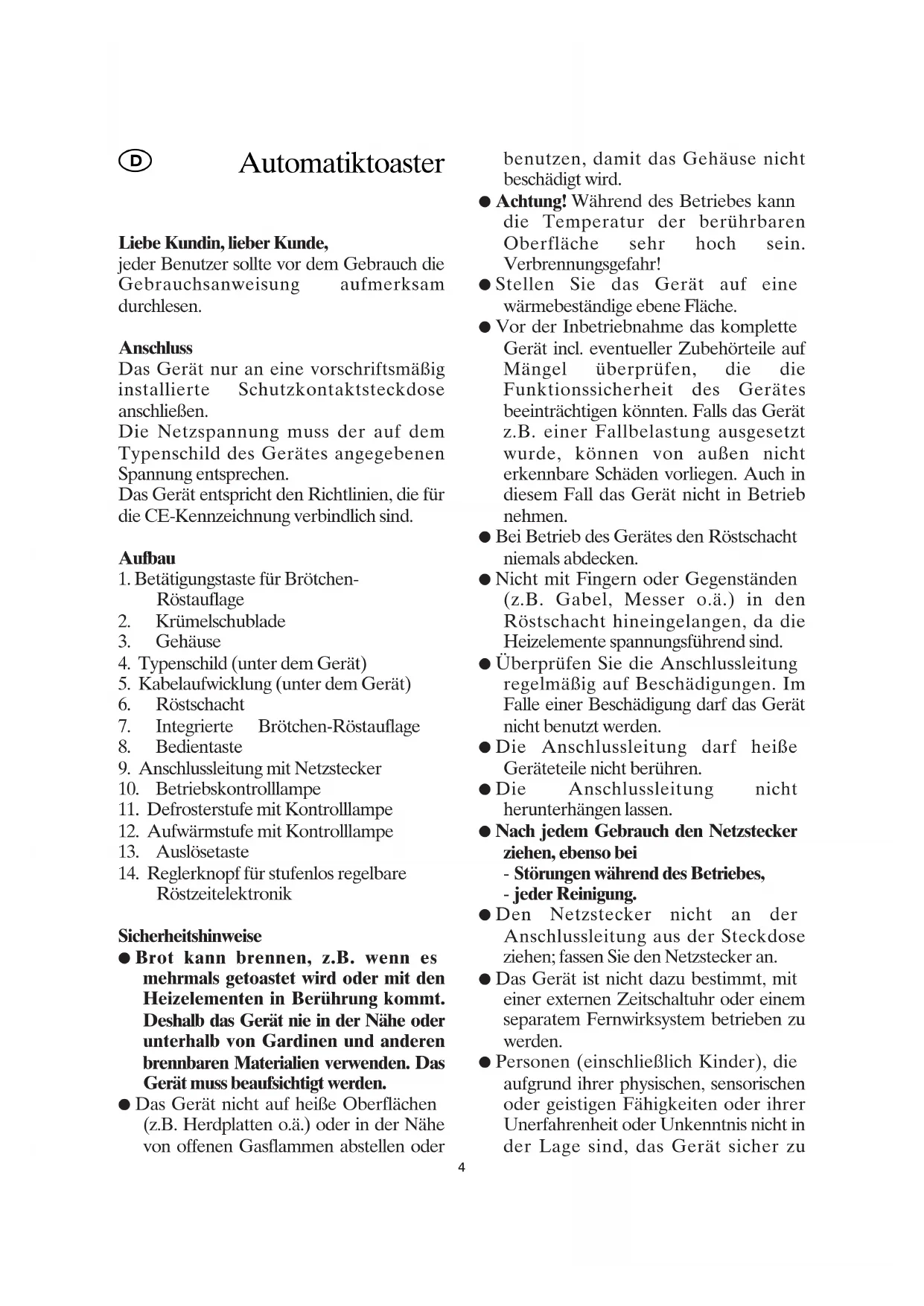 Laden Sie die Anleitung für Ihr Toaster kostenlos im PDF-Format! Finden Sie Ihr Handbuch AT 2540 - SEVERIN und nehmen Sie Ihr elektronisches Gerät wieder in die Hand. Auf dieser Seite sind alle Dokumente veröffentlicht, die für die Verwendung Ihres Geräts notwendig sind. AT 2540 von der Marke SEVERIN.