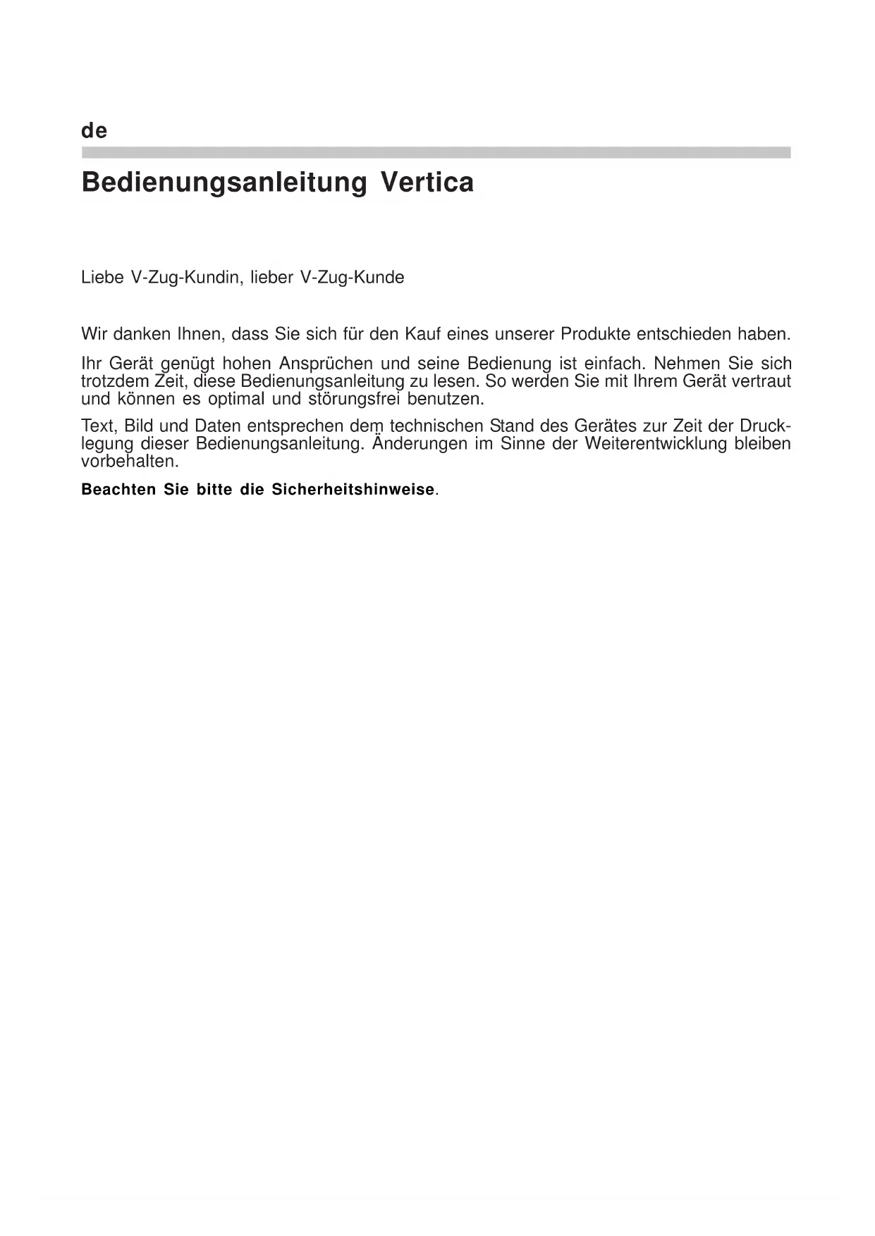 Finden Sie kostenlos die Bedienungsanleitung des Geräts Vertica V-ZUG als PDF.