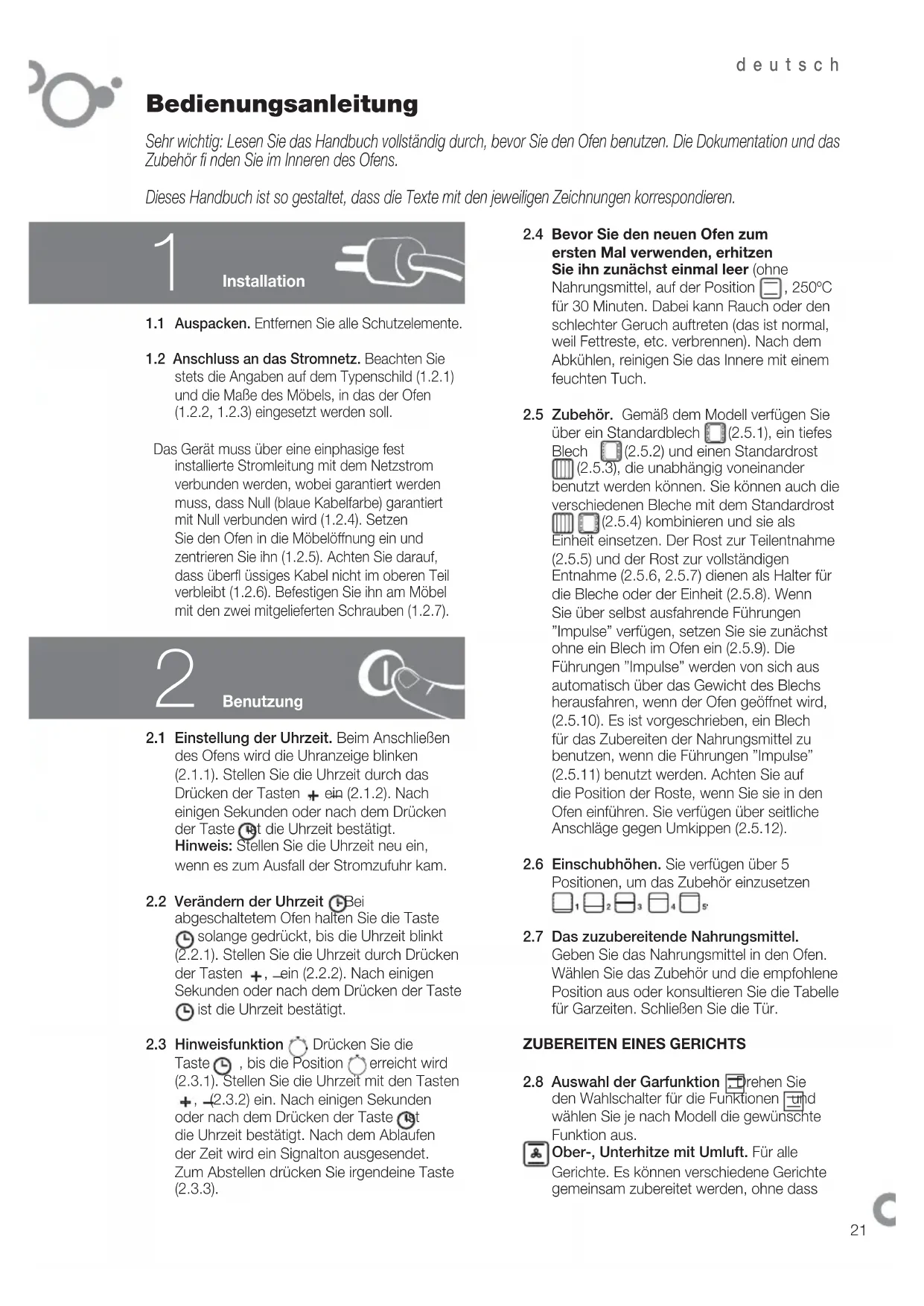 2.4 Bevor Sie den neuen Ofen zum