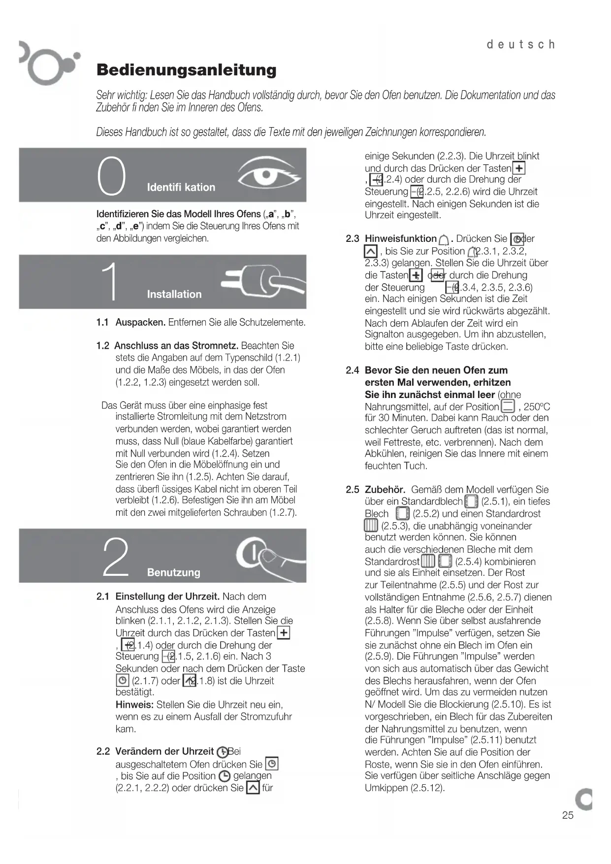 Sehr wichtig: Lesen Sie das Handbuch vollständig durch, bevor Sie den Ofen benutzen. Die Dokumentation und das