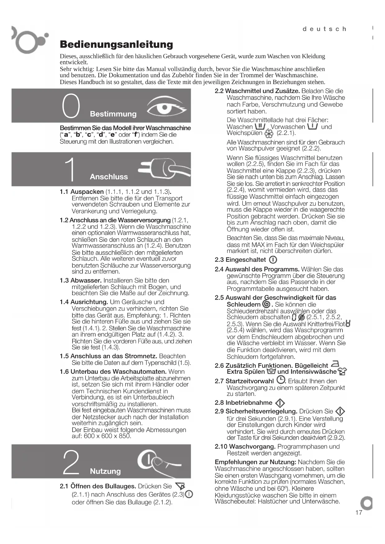 (2.1.1) nach Anschluss des Gerätes (2.3) oder öffnen Sie das Bullauge (2.1.2).18 deutsch