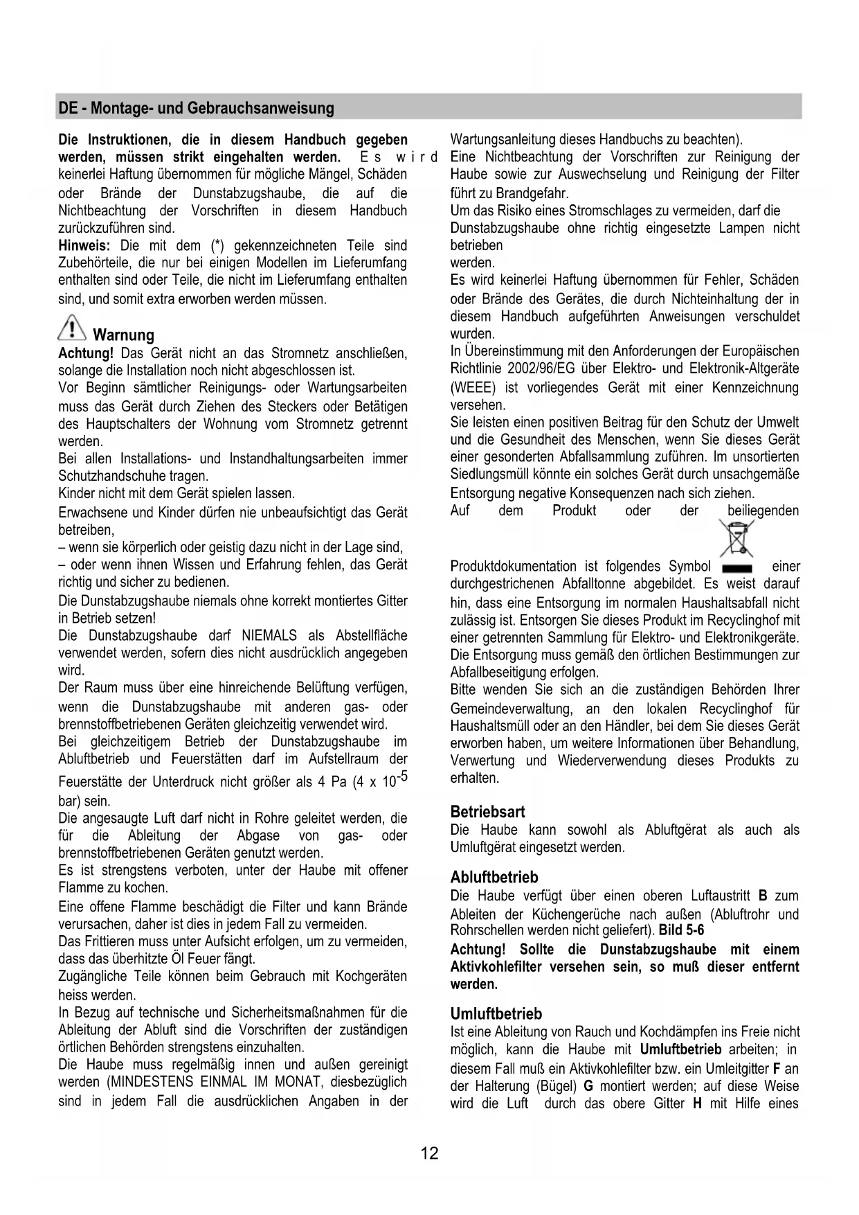 12F2 – Umluftbetrieb).