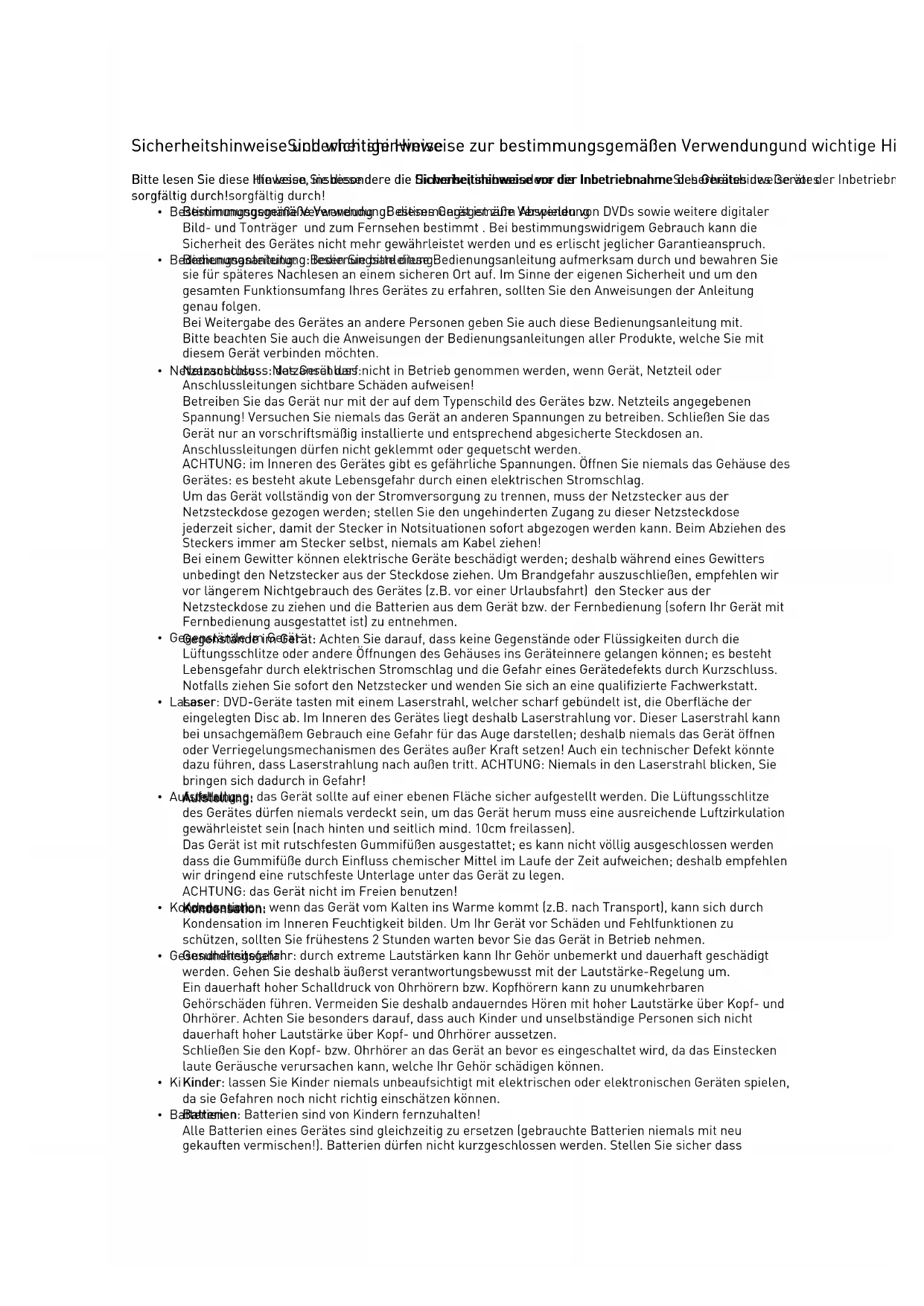 : dieses Gerät ist zum Abspielen von DVDs sowie weitere digitaler Bild- und Tonträger und zum Fernsehen bestimmt . Bei bestimmungswidrigem Gebrauch kann die Sicherheit des Gerätes nicht mehr gewährleistet werden und es erlischt jeglicher Garantieanspruch.