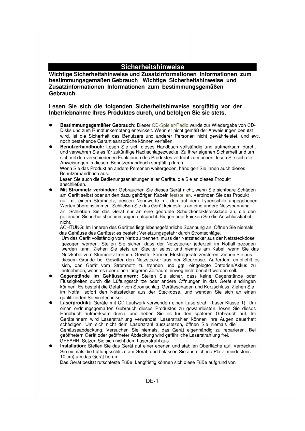Bestimmungsgemäßer Gebrauch: Dieser CD-Spieler/Radio wurde zur Wiedergabe von CD-