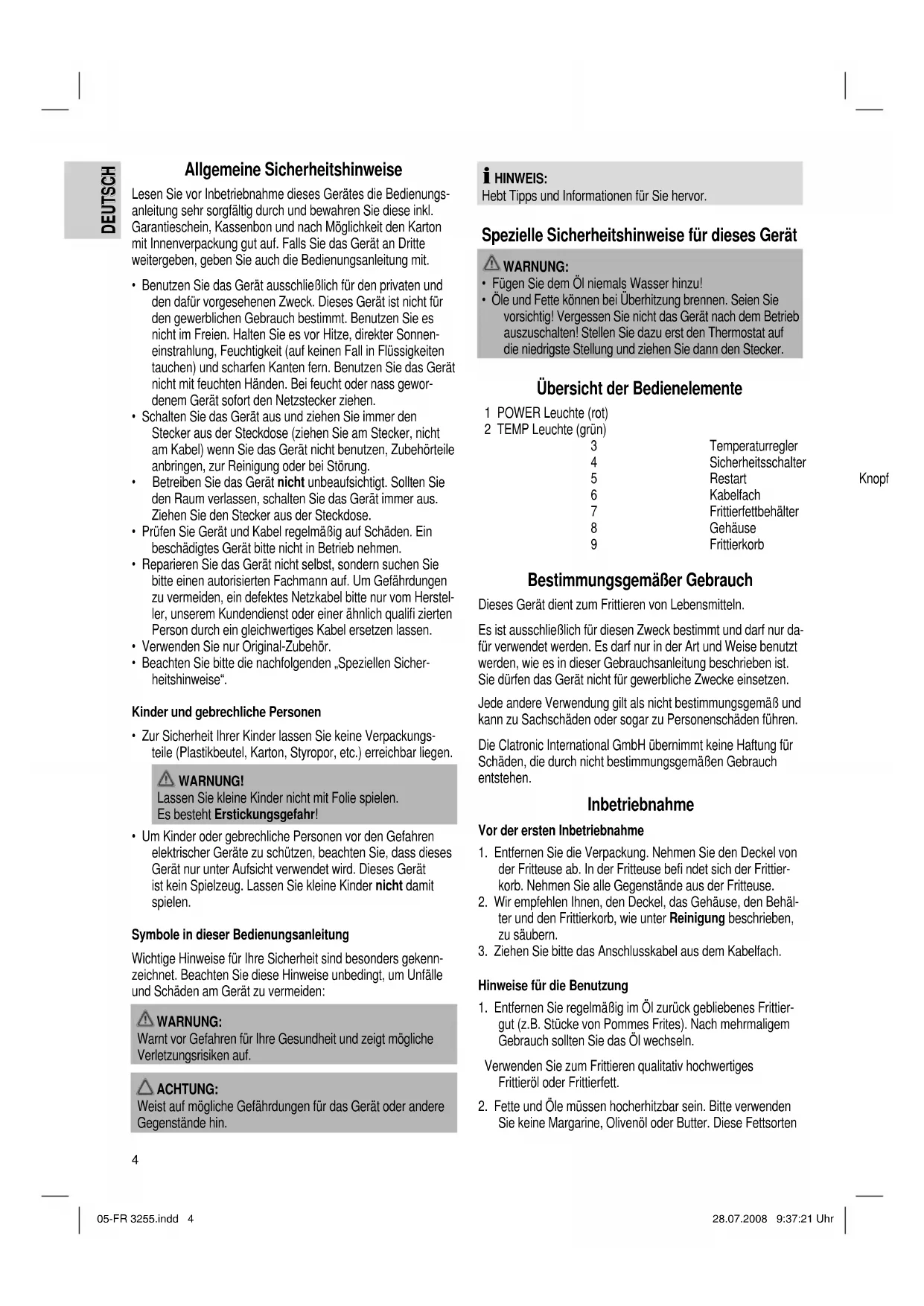 Laden Sie die Anleitung für Ihr Fritteuse kostenlos im PDF-Format! Finden Sie Ihr Handbuch FR 3255 - CLATRONIC und nehmen Sie Ihr elektronisches Gerät wieder in die Hand. Auf dieser Seite sind alle Dokumente veröffentlicht, die für die Verwendung Ihres Geräts notwendig sind. FR 3255 von der Marke CLATRONIC.