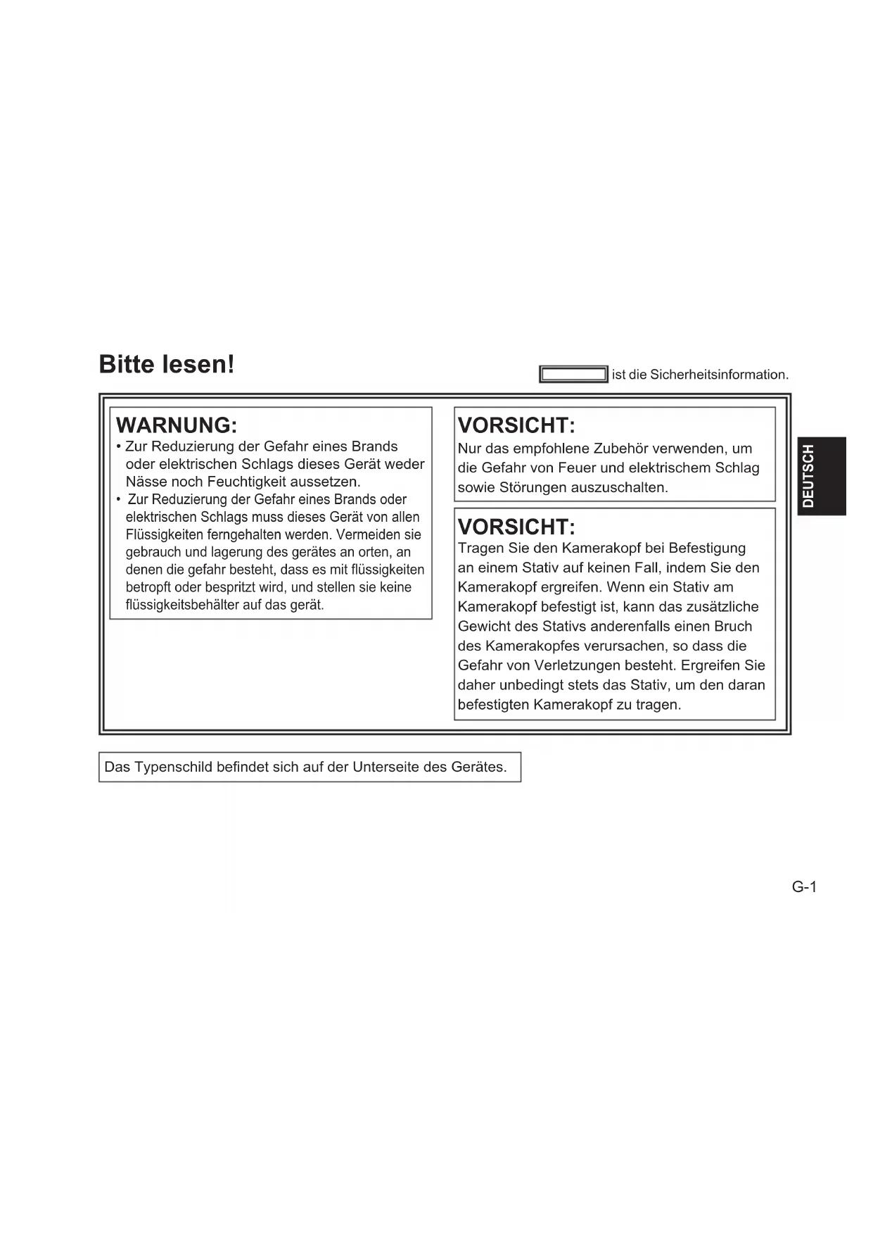 Vorsichtshinweise zum Betrieb G-5