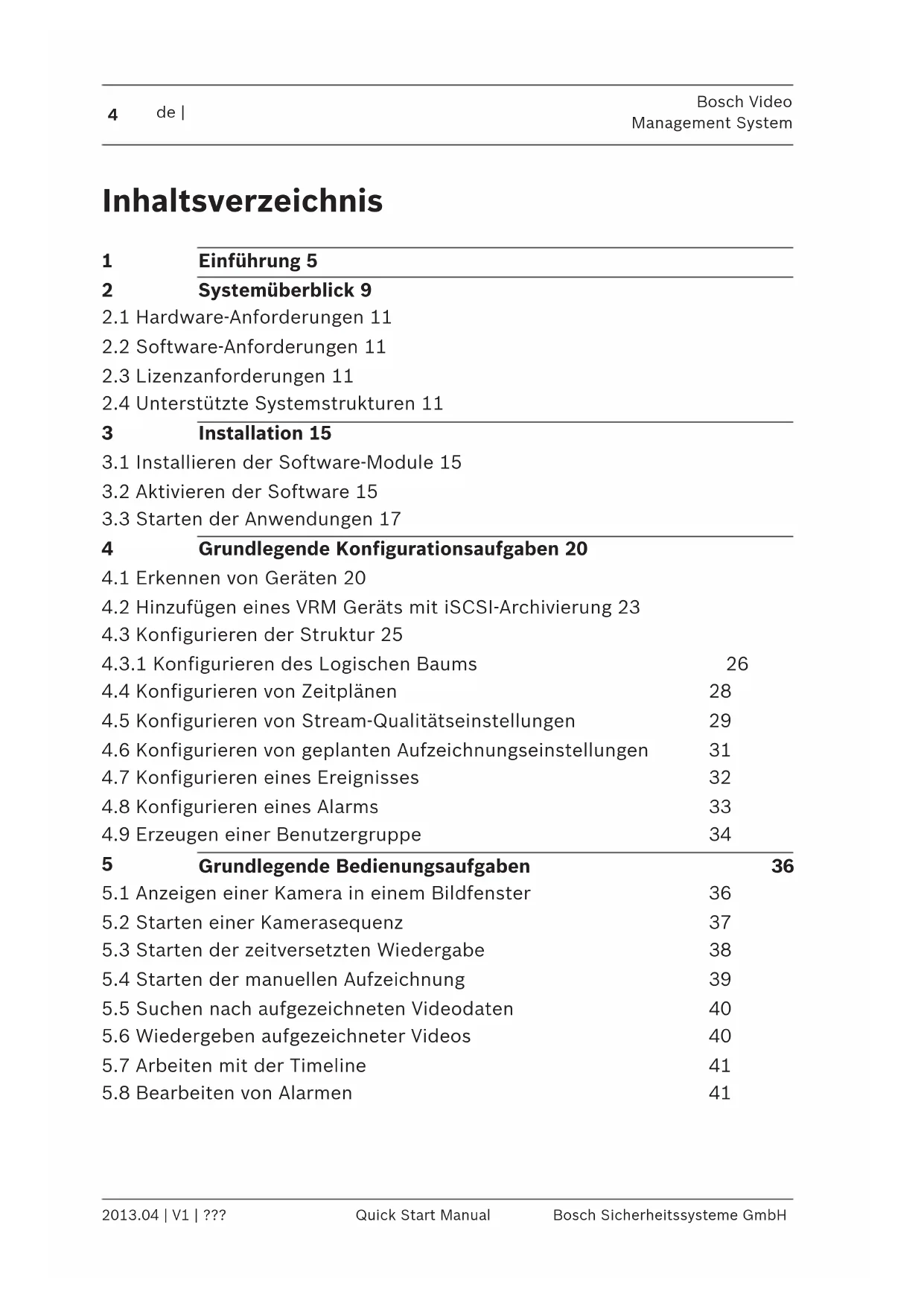 Bosch Sicherheitssysteme GmbH Quick Start Manual 2013.04 | V1 | ???Inhaltsverzeichnis