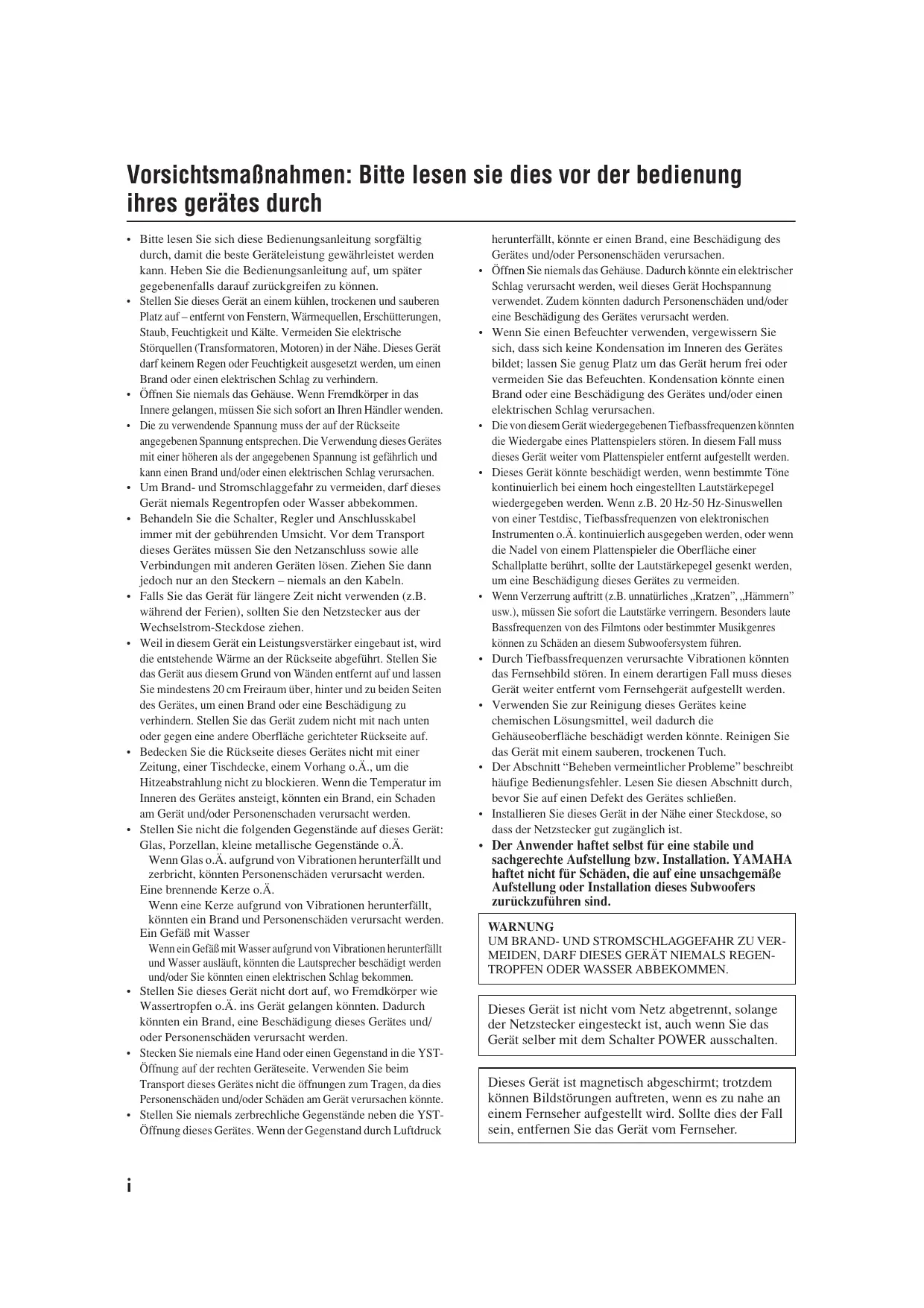 BEDIENUNGSANLEITUNG YST-FSW050, YST-SW012, YST-SW030, YST-SW150 YAMAHA