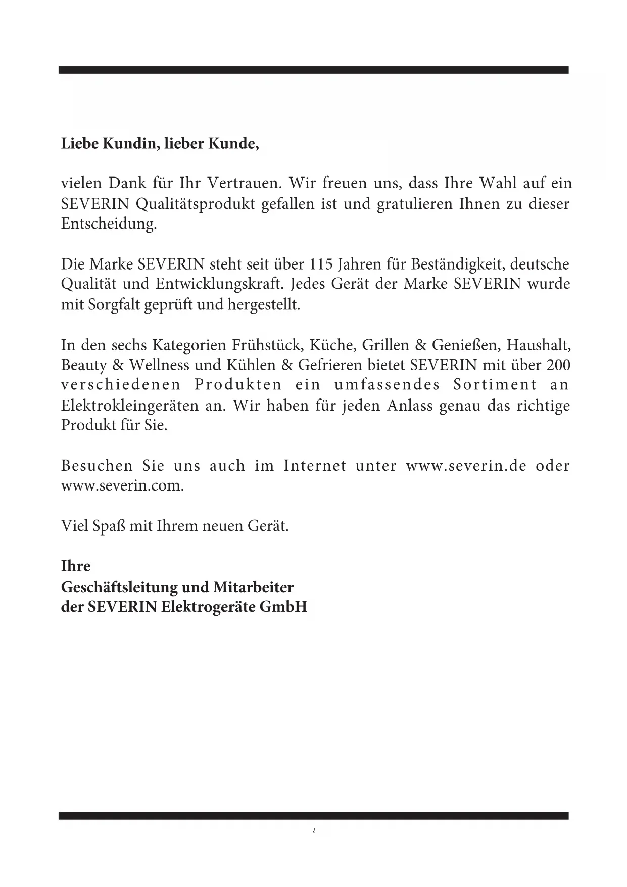 SEVERIN Qualitätsprodukt gefallen ist und gratulieren Ihnen zu dieser