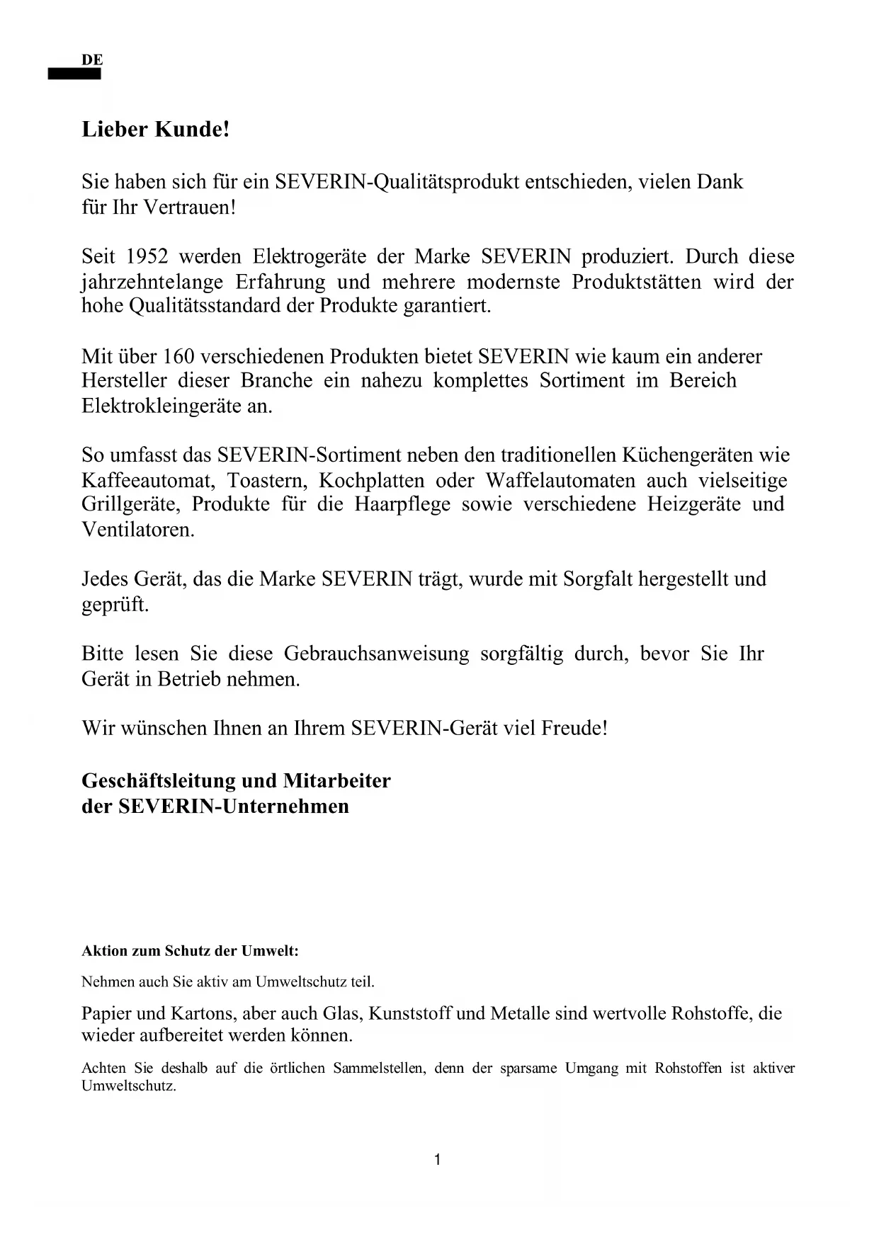 Sie haben sich für ein SEVERIN-Qualitätsprodukt entschieden, vielen Dank