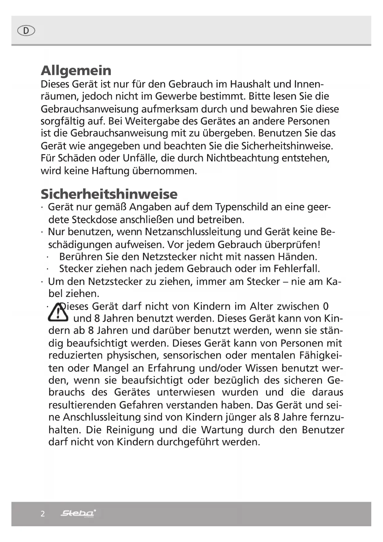 Finden Sie kostenlos die Bedienungsanleitung des Geräts FGN 2.0 XXL STEBA als PDF.