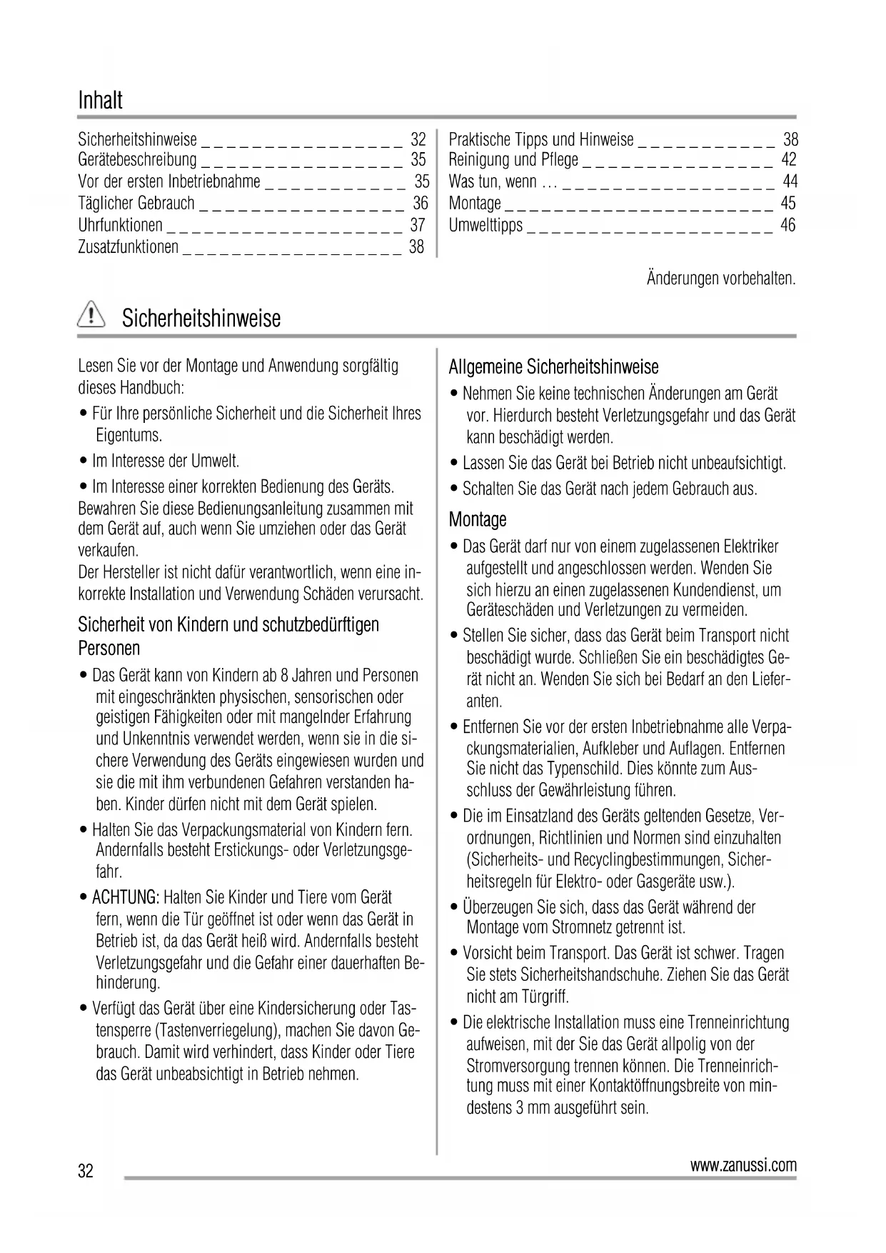 www.zanussi.comInhalt