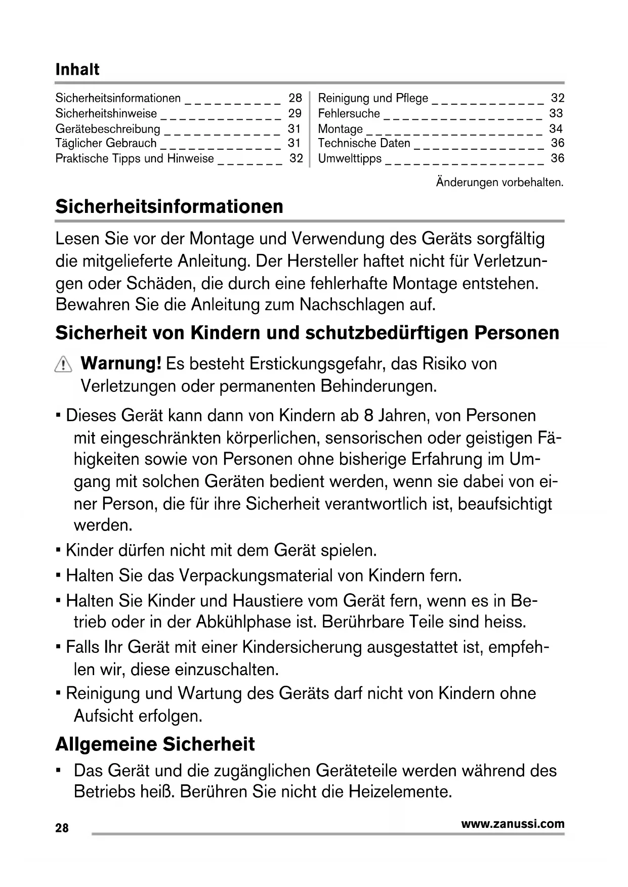 Sicherheitsinformationen _ _ _ _ _ _ _ _ _ _ 28